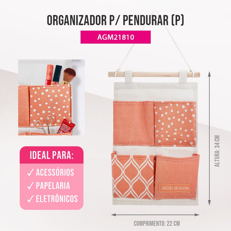Organizador Porta Trecos p/ Pendurar c/ 4 Bolsos - Jacki Design