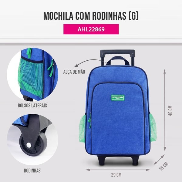 Conjunto Mochila com Rodinhas Junior e Lancheira Térmica - Jacki Design