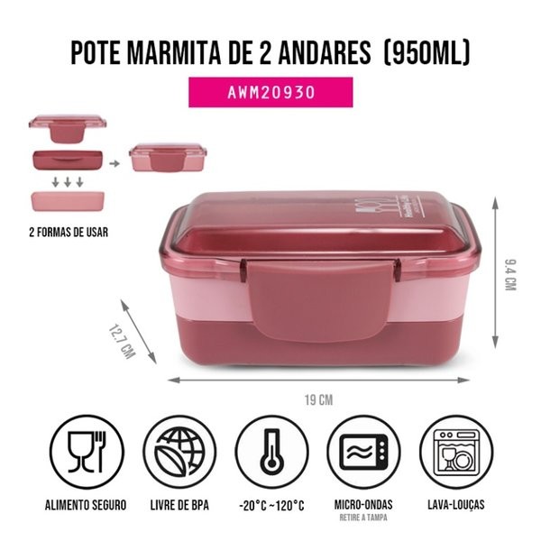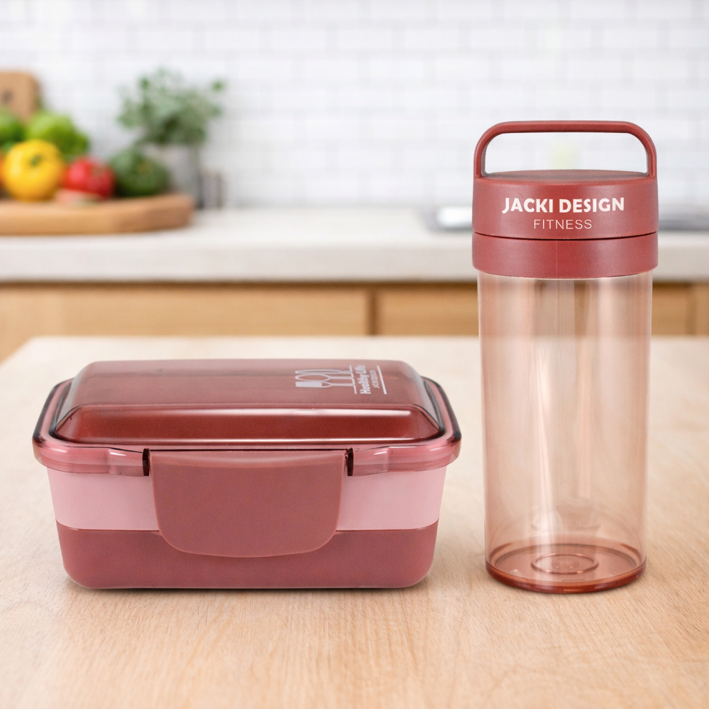 Conjunto de Garrafa e pote de marmita 2 andares - Jacki Design