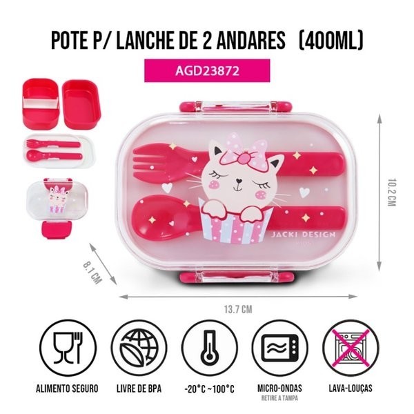 Conjunto Lancheira Térmica Infantil e Pote p/ Lanche de 2 Andares Infantil com Garrafa - Jacki Design
