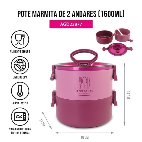 Conjunto da Linha Joy com Bolsa térmica, Porta talher, Pote de Marmita 2 Andares e Garrafa 430ml - Jacki Design