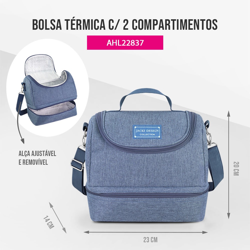 Kit Bolsa Térmica, Pote Marmita 950ml, Garrafa 430ml e Porta Talheres - Jacki Design