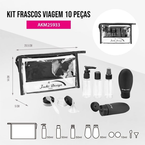 Kit de Frascos p/ Viagem de 10 Peças - Jacki Design