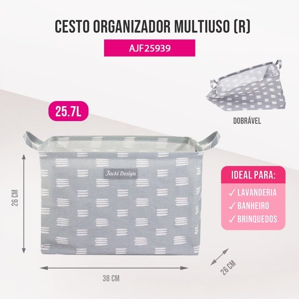 Cesto Organizador Multiuso Retangular 25L - Jacki Design