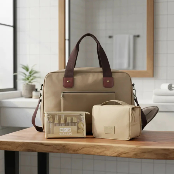 Kit Bolsa + Necessaire + Conjunto de Frasco com melhor Custo-Beneficio para Viagem e passeio