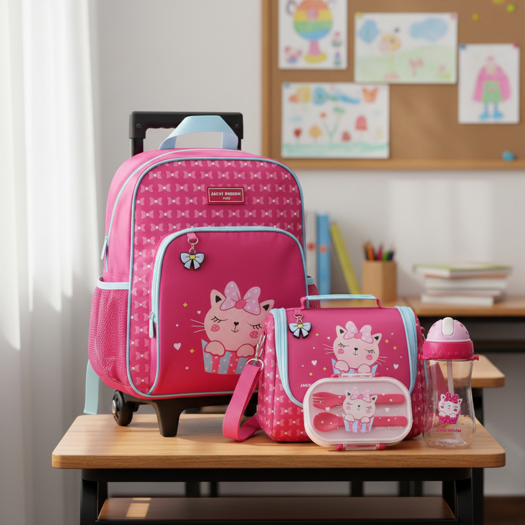 Kit Escolar Infantil Completa com 5 Peças Jacki Design