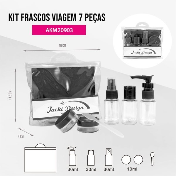2 Kit de Frascos p/ Viagem de 7 Peças - Jacki Design