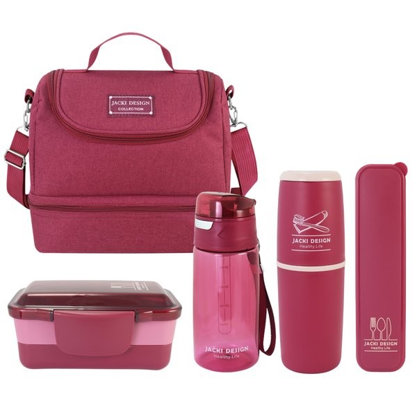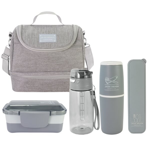 Kit de Bolsa Térmica 2 Compartimentos, Marmita e Garrafa, Porta Talher e Porta Escova Jacki Design