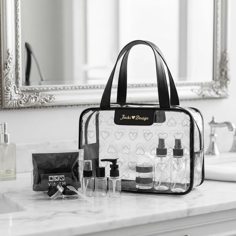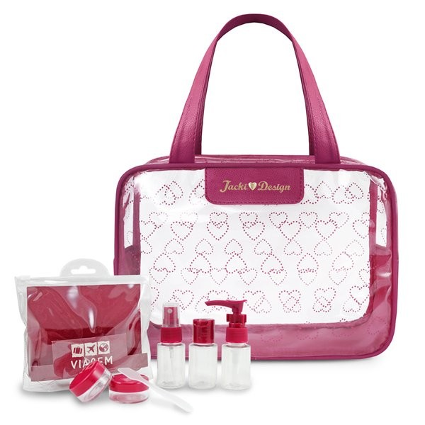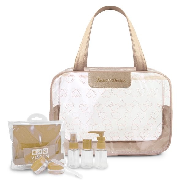 Kit de Bolsa Transparente e Frascos de Viagem de 7 Peças