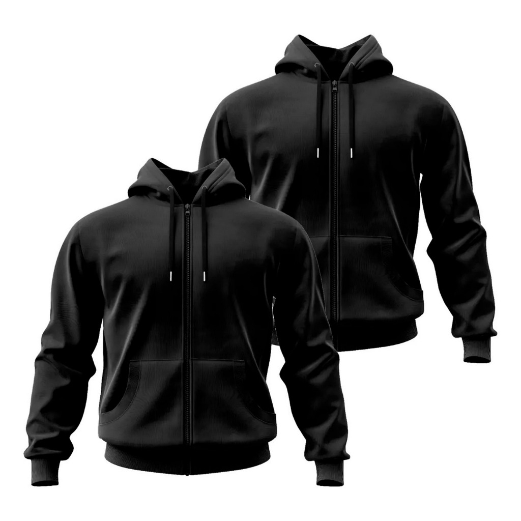 Kit 2 Moletons Canguru Zíper Algodão Blusa De Frio Com Capuz Jaqueta Unissex