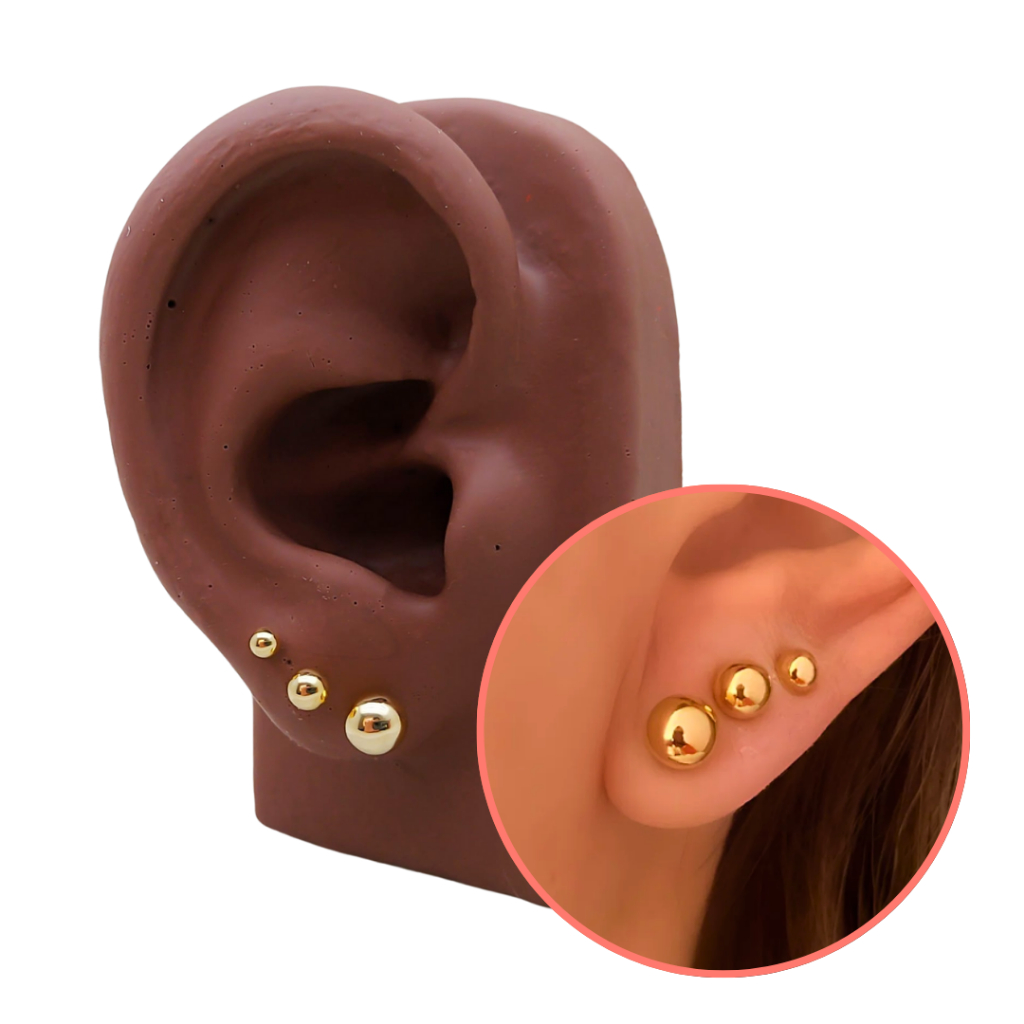 Trio Kit De Brincos Bolinhas Lisas Com Banho De Ouro Semijoias Hipoalergênico