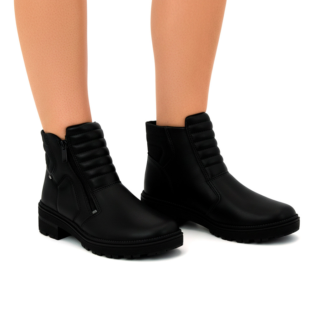Bota Feminino Dakota G5653 Salto Tratorado Grosso Ziper Cano Baixo