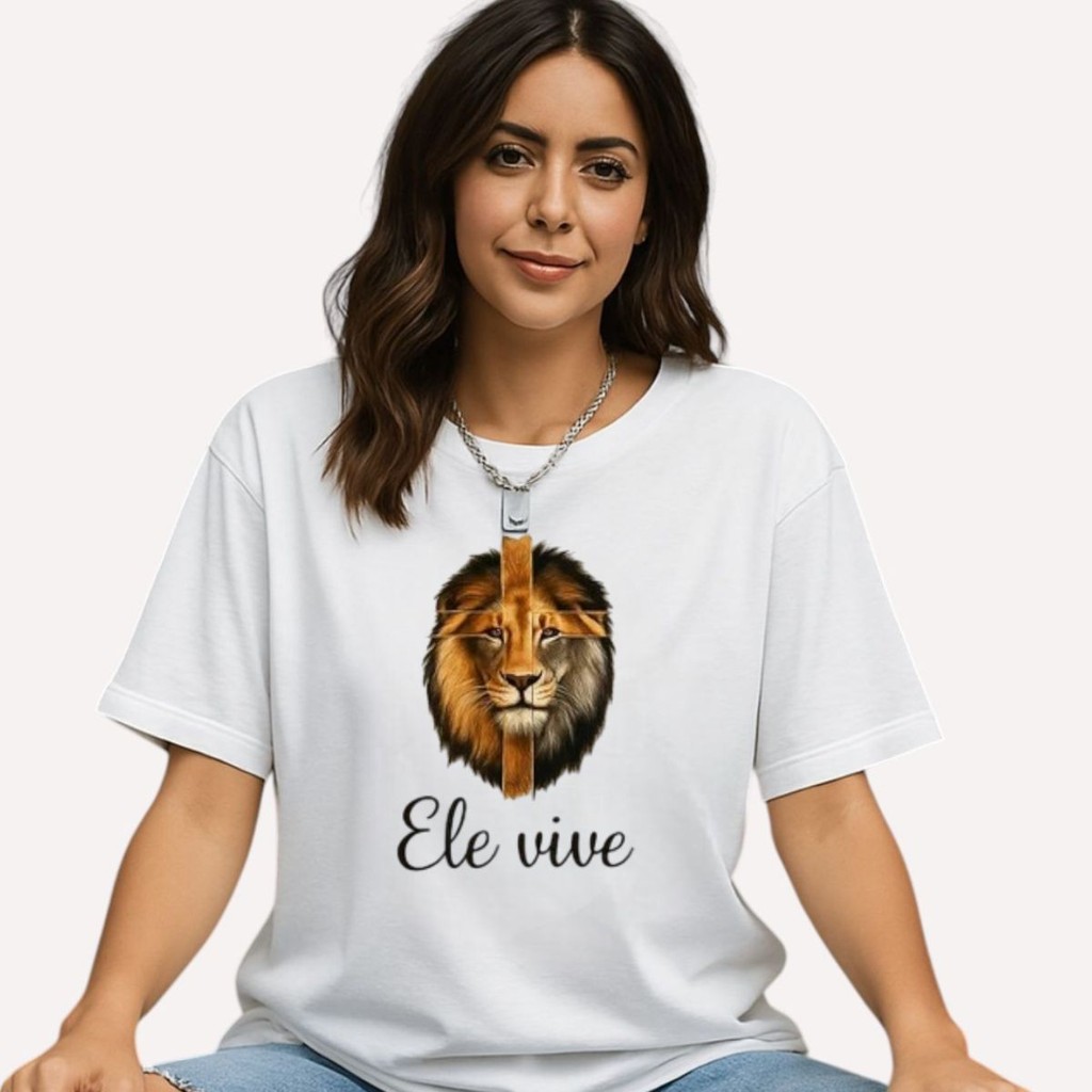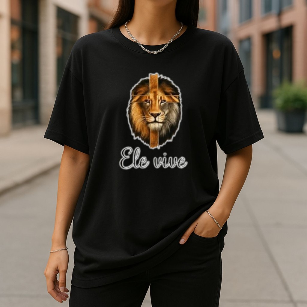 camiseta feminina oversized leão ele vive street cristã 100% algodão gospel