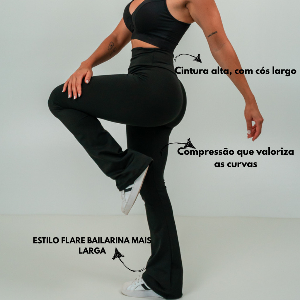 Calça Legging Flare Leg Boca De Sino Bailarina Suplex Grossa Zero Transparência Casual e Academia