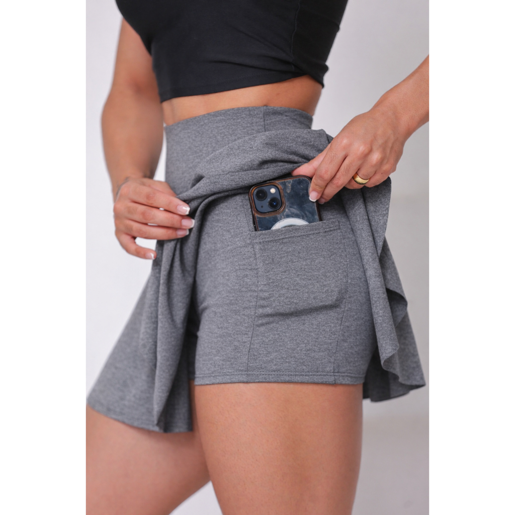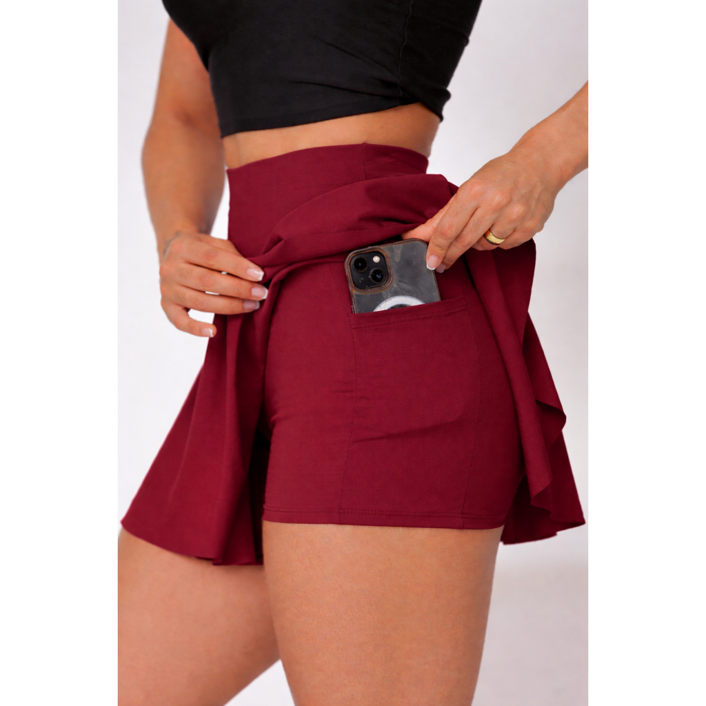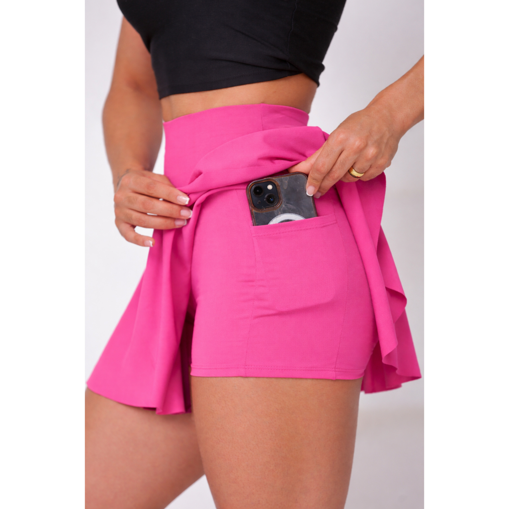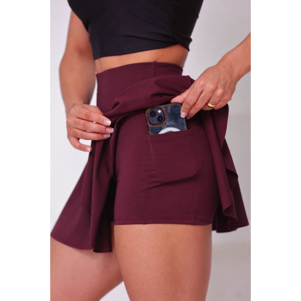Short Saia Babado Com Bolso Cintura Alta Suplex Fitness WOLFOX
