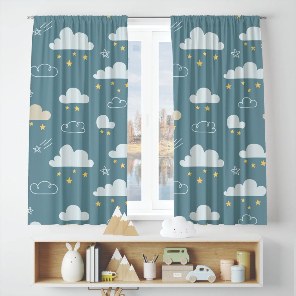 Cortina para quarto Infantil 2,00x1,50 | Quarto, Sala | Estrela, Nuvem, Lua