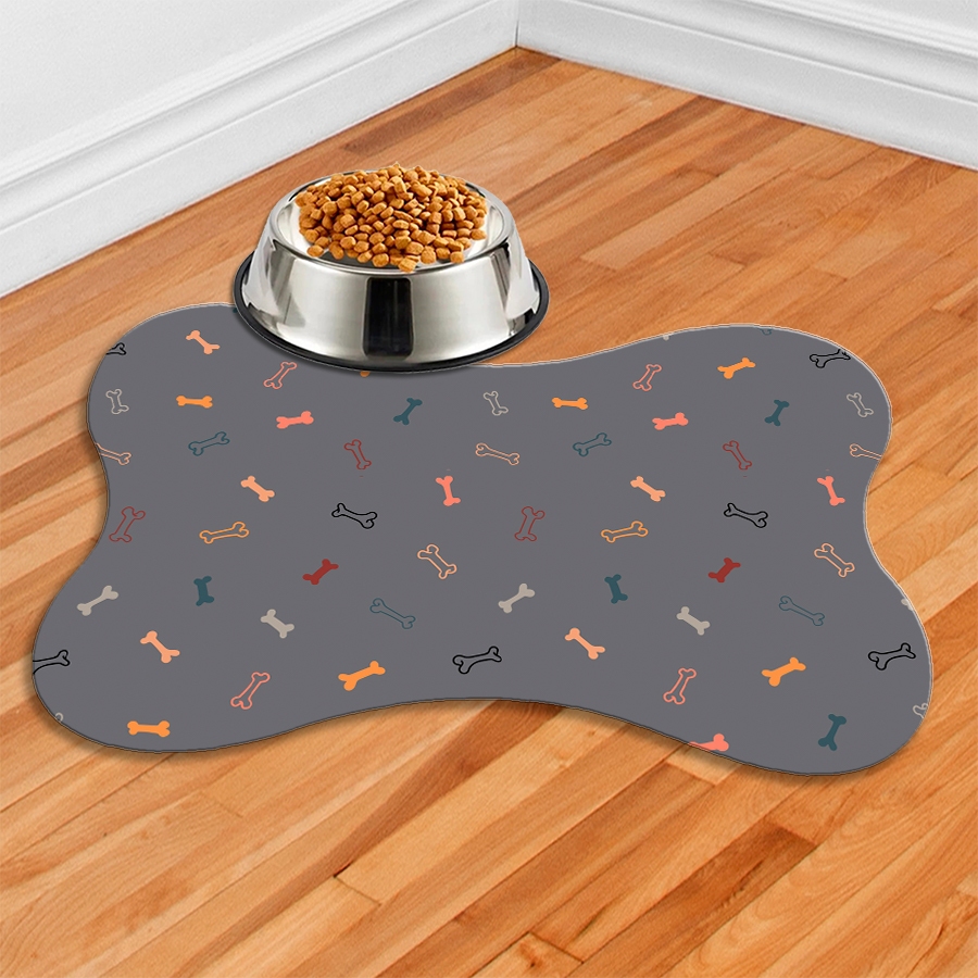 Tapete Para Comedouro PET Antiderrapante - Ossinho - 38x25 - Cachorro e Gato