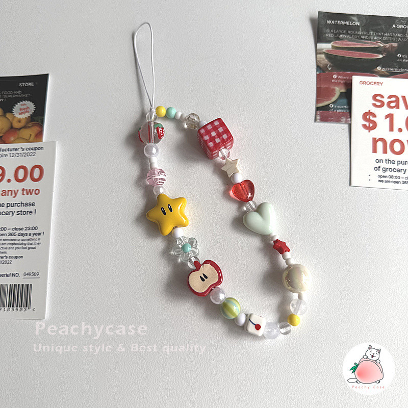 INS Star Apple Em Forma De Coração Xadrez Vermelho Quadrado Frisado Corrente Para Celular Pulseira Com Pingente De Telef