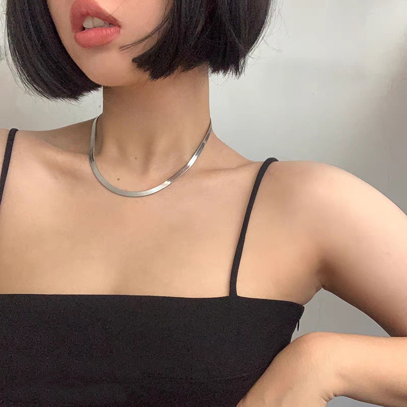 Gargantilha Colar cordão achatado fita aço inox dourado Feminina