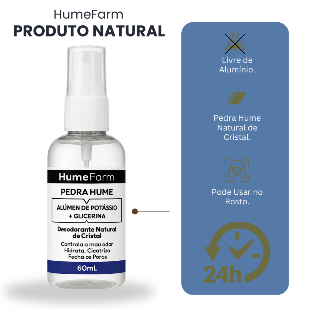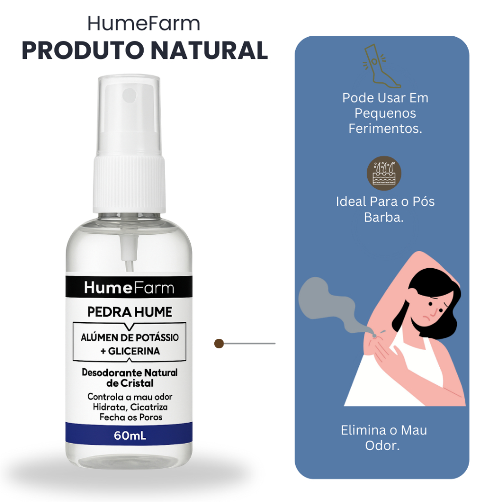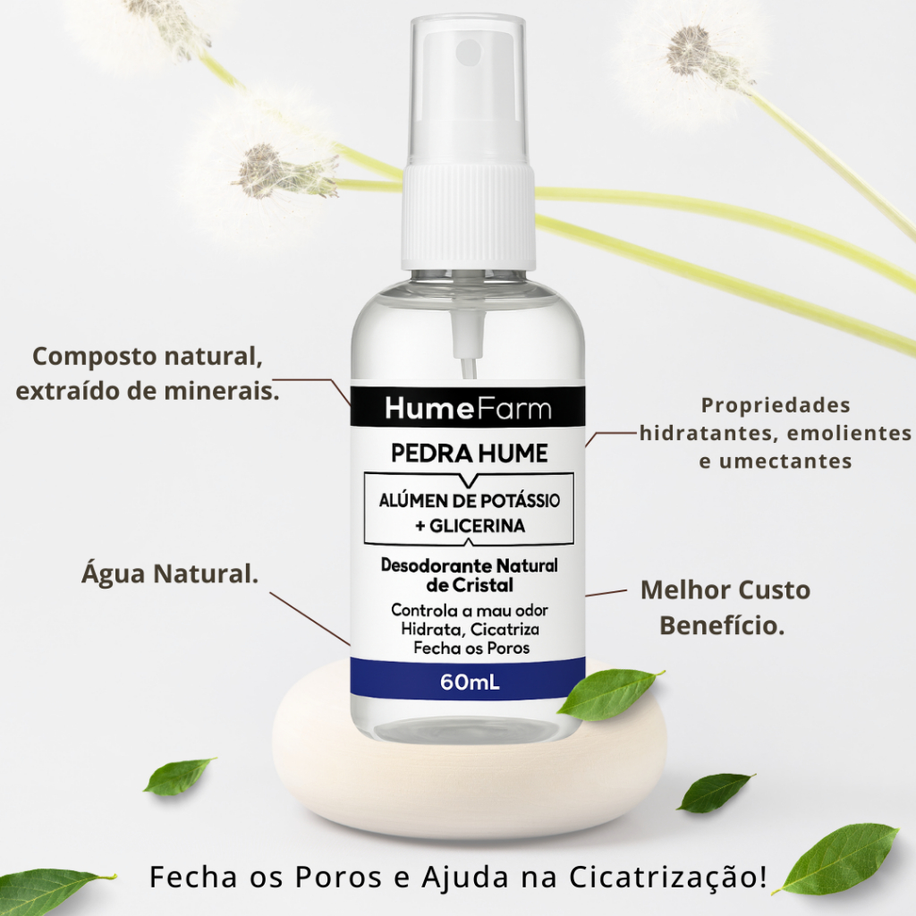 Pedra Hume Spray 60ml Com Glicerina Rende 300 Aplicações Desodorante de Cristal