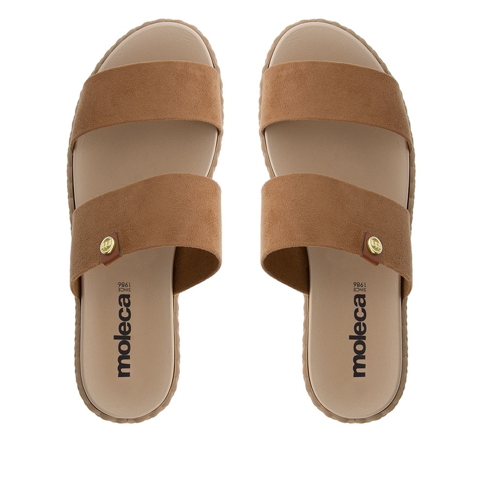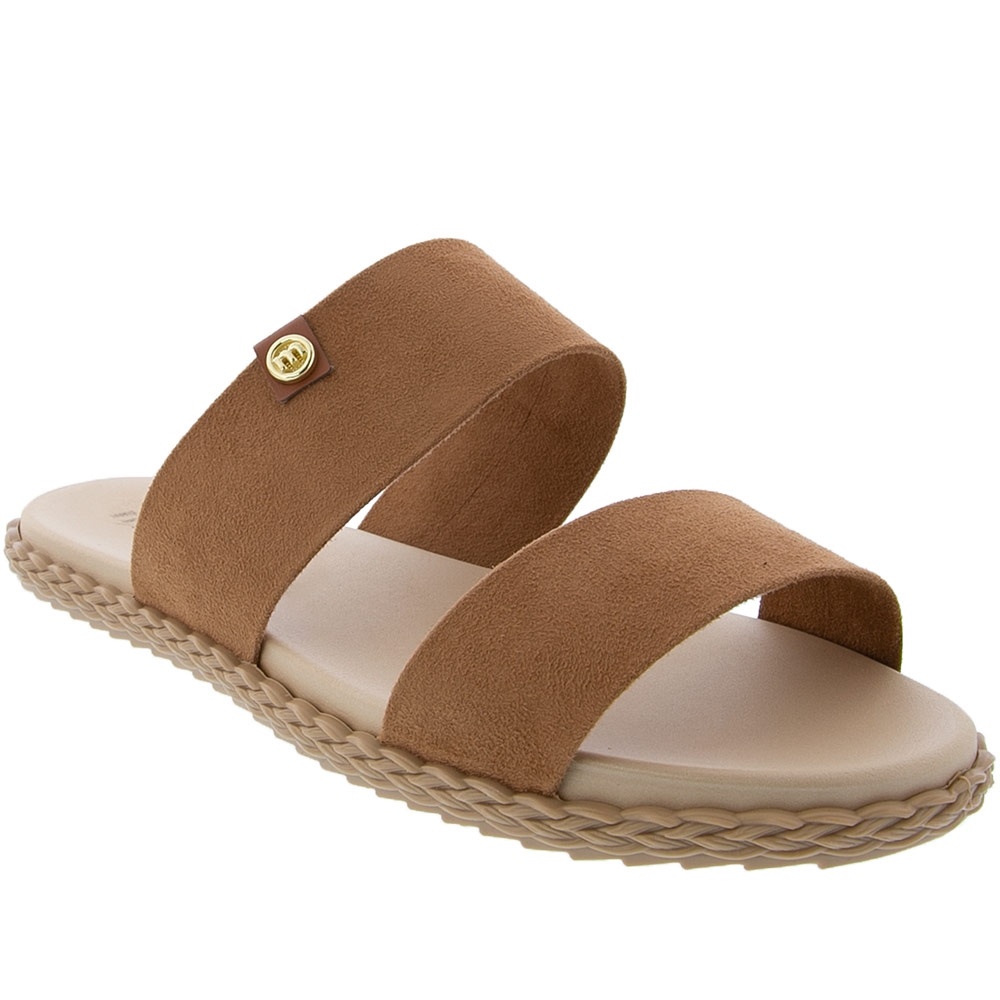 Rasteira Moleca Tiras Camurça Caramelo