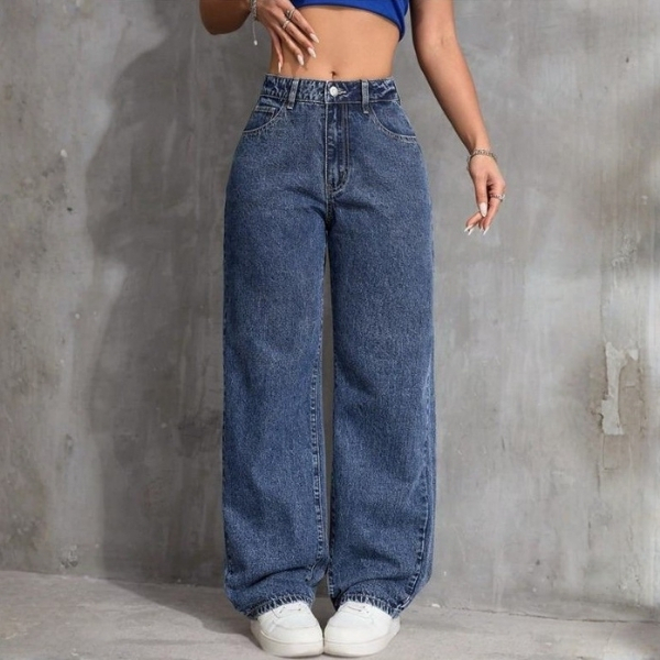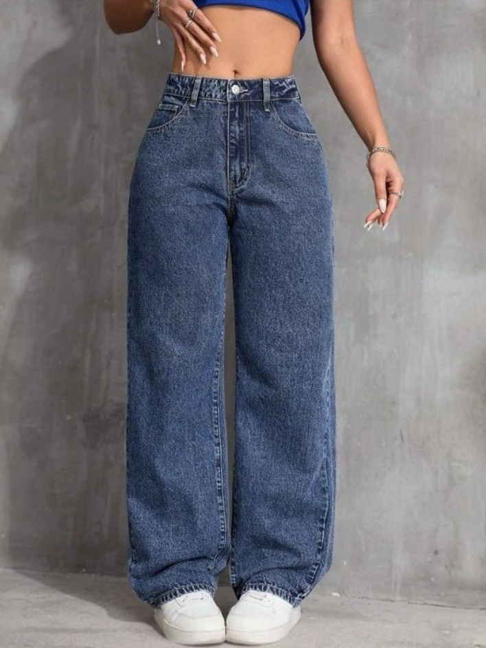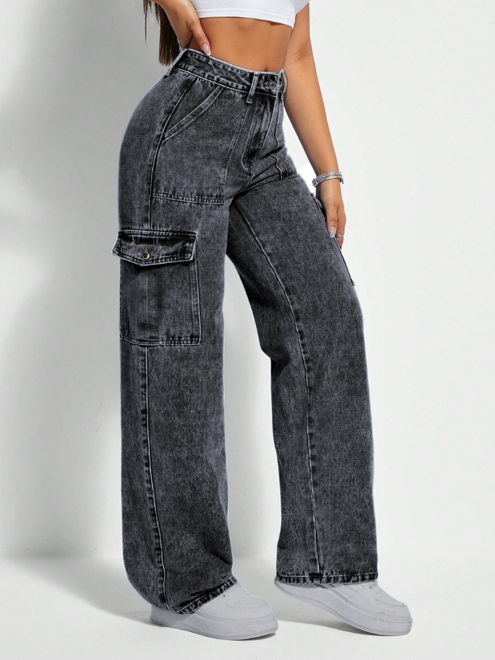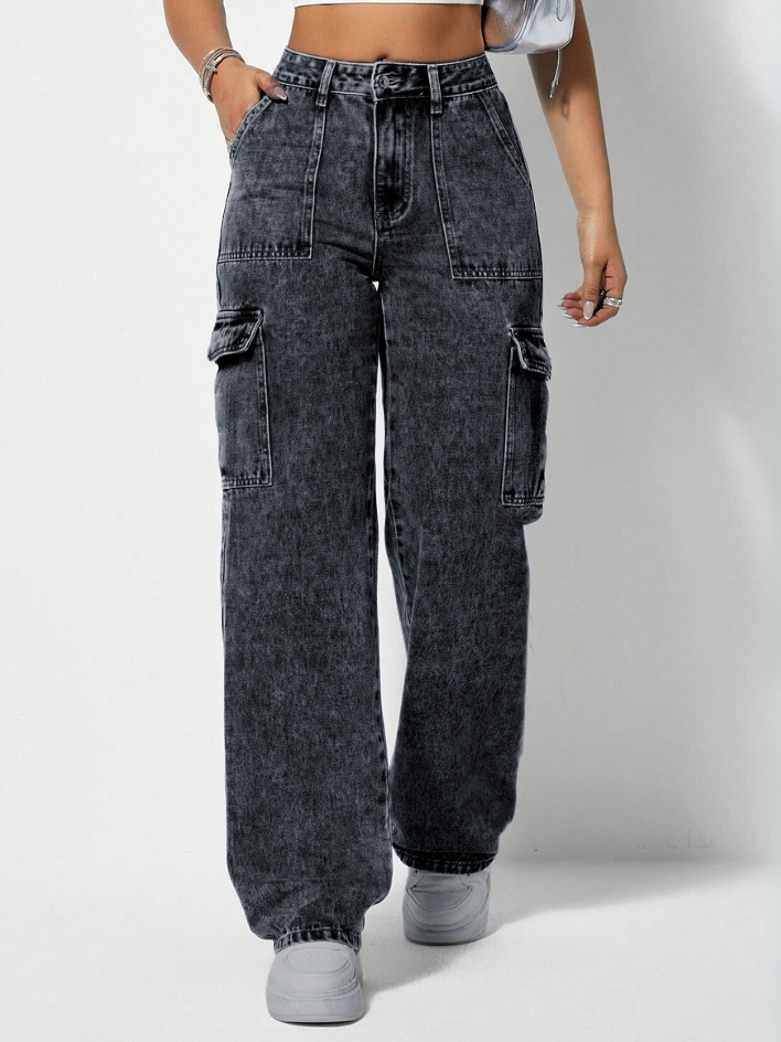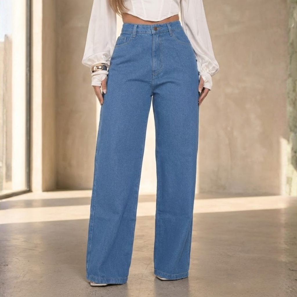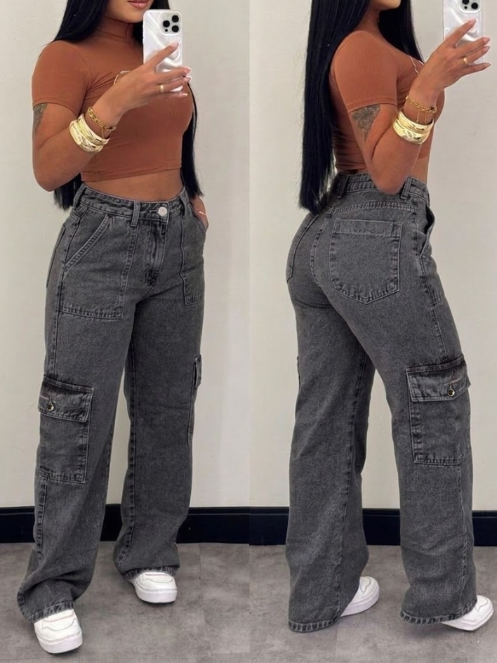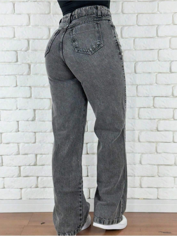 Calça Jeans feminina Wide Leg Black Marmorizada Pantalona Boca Larga Cintura Alta Premium