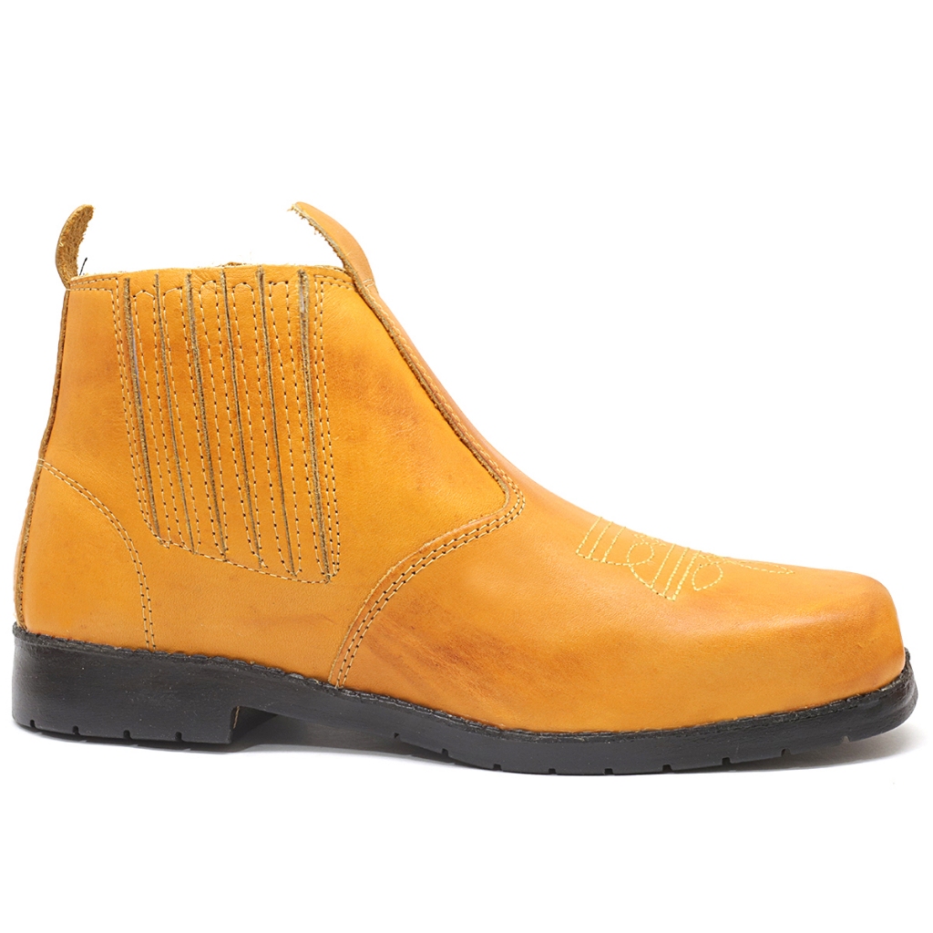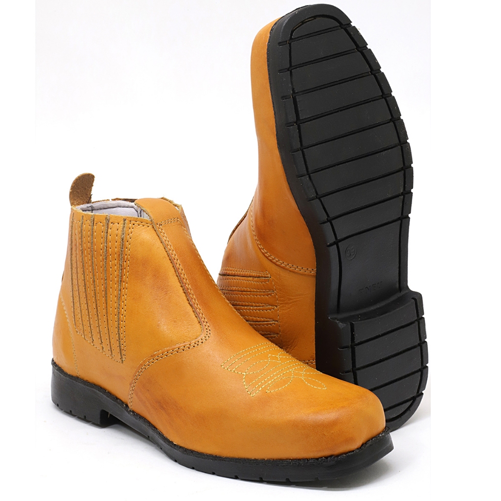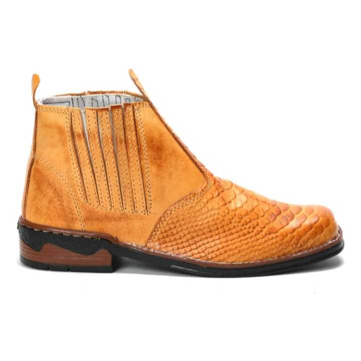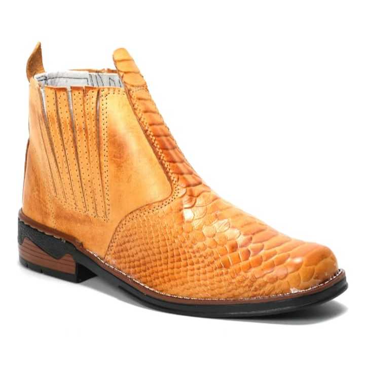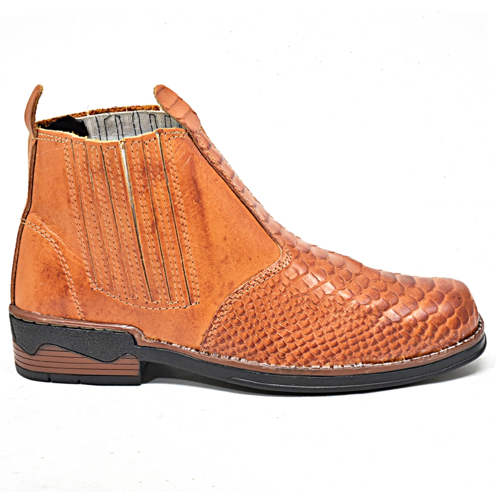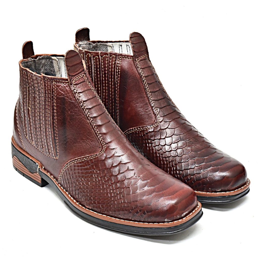 Botina Tipo Texana Escamada Cobra Em Couro Modelo De Elástico & Bota Mateira Sola Borracha