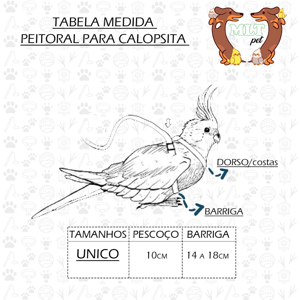 Coleira Peitoral para Calopsita Cetim Guia Mlt Pet