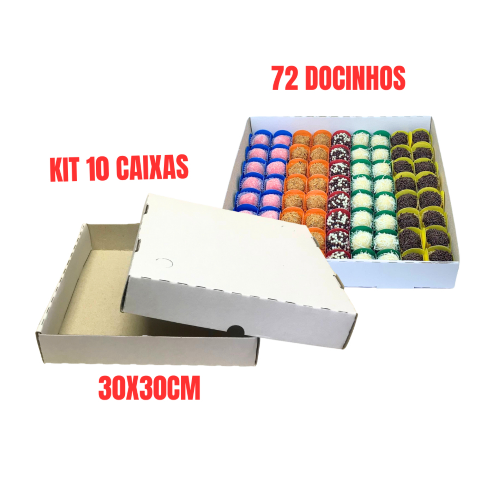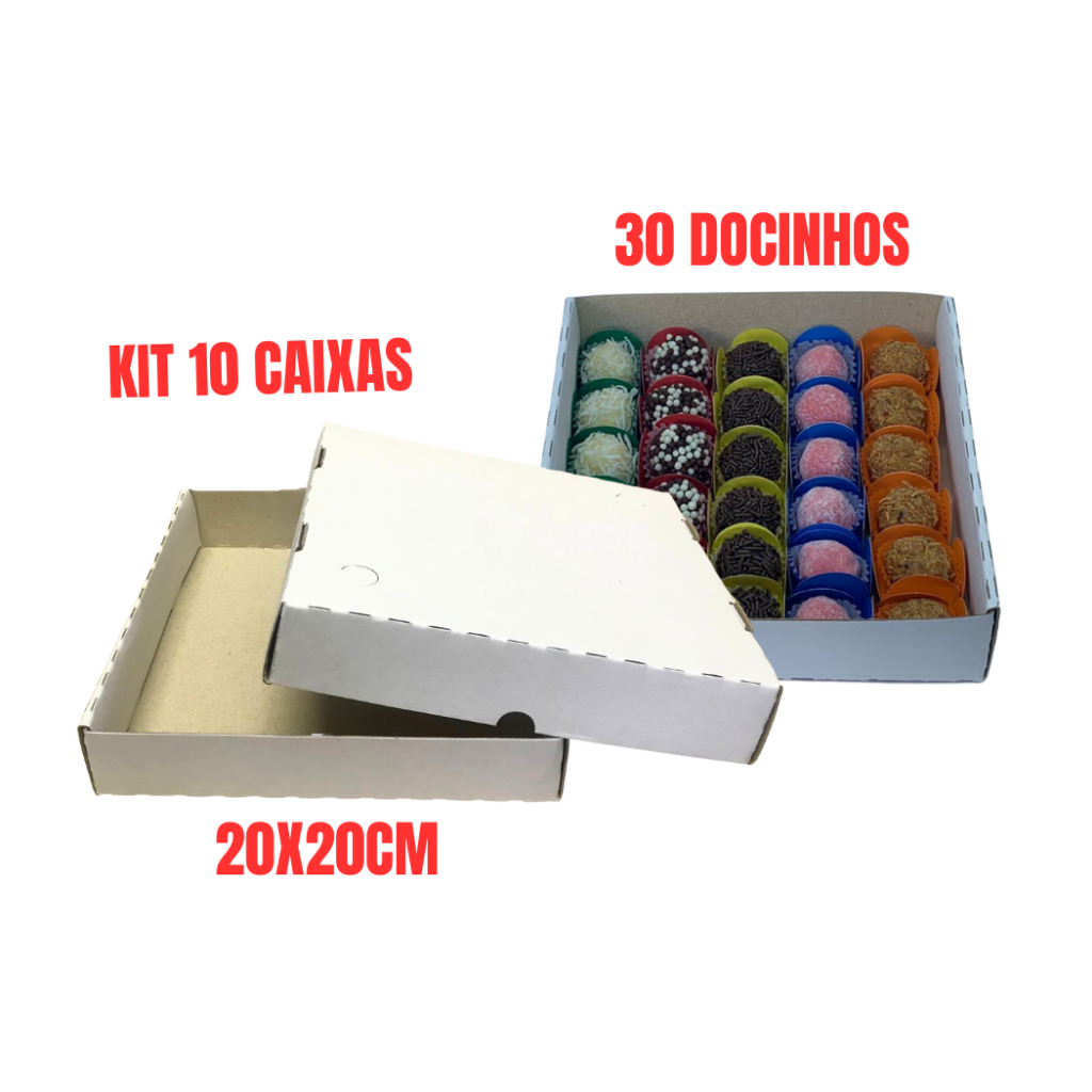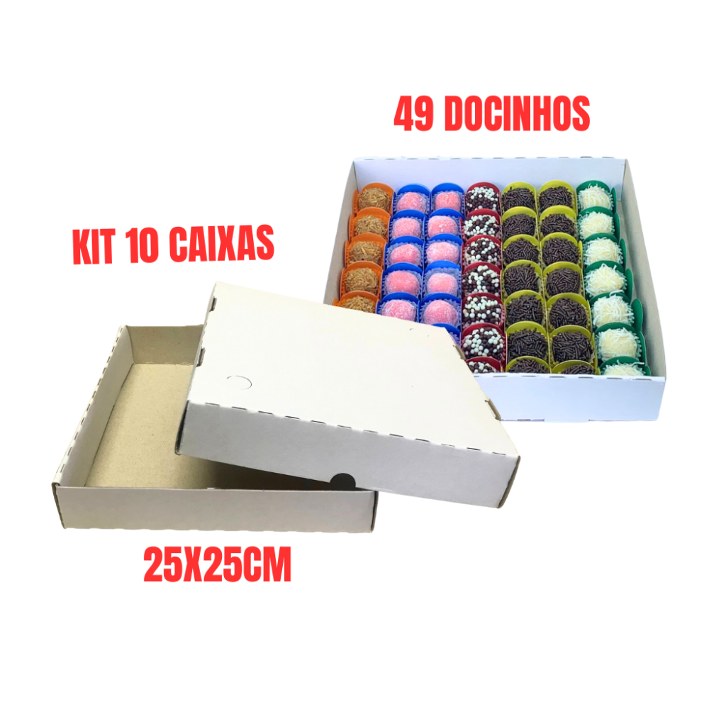 Caixa Para Doces e Salgados Quadrada - Kits com 10 unidades (10 tampas e 10 fundos)