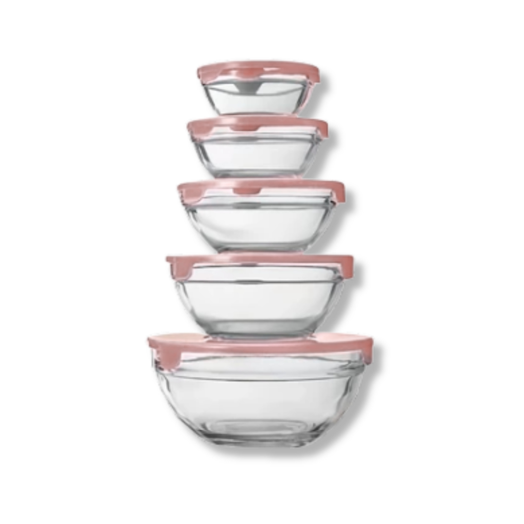 Pote Vidro Tigela Bowl Com Tampa Conjunto De 5 Peças Para Freezer Microondas