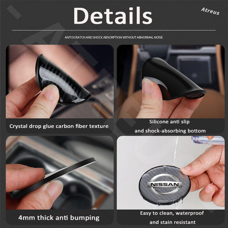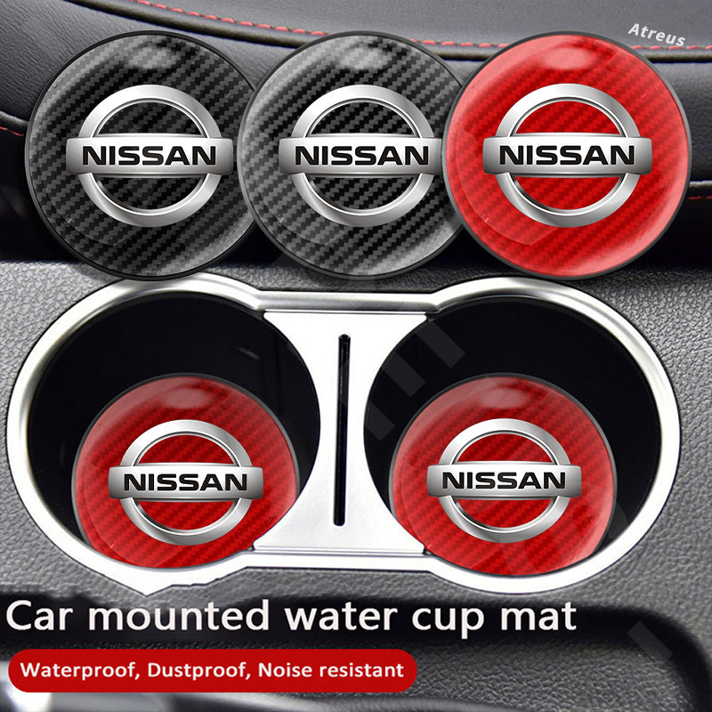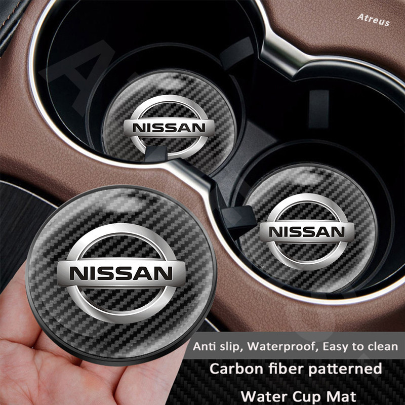 1Pc Nissan Porta-Copos Redondos De Fibra De Carbono Almofada Antiderrapante Para Nissan Kicks Versa Tiida March Sentra Livina gtr