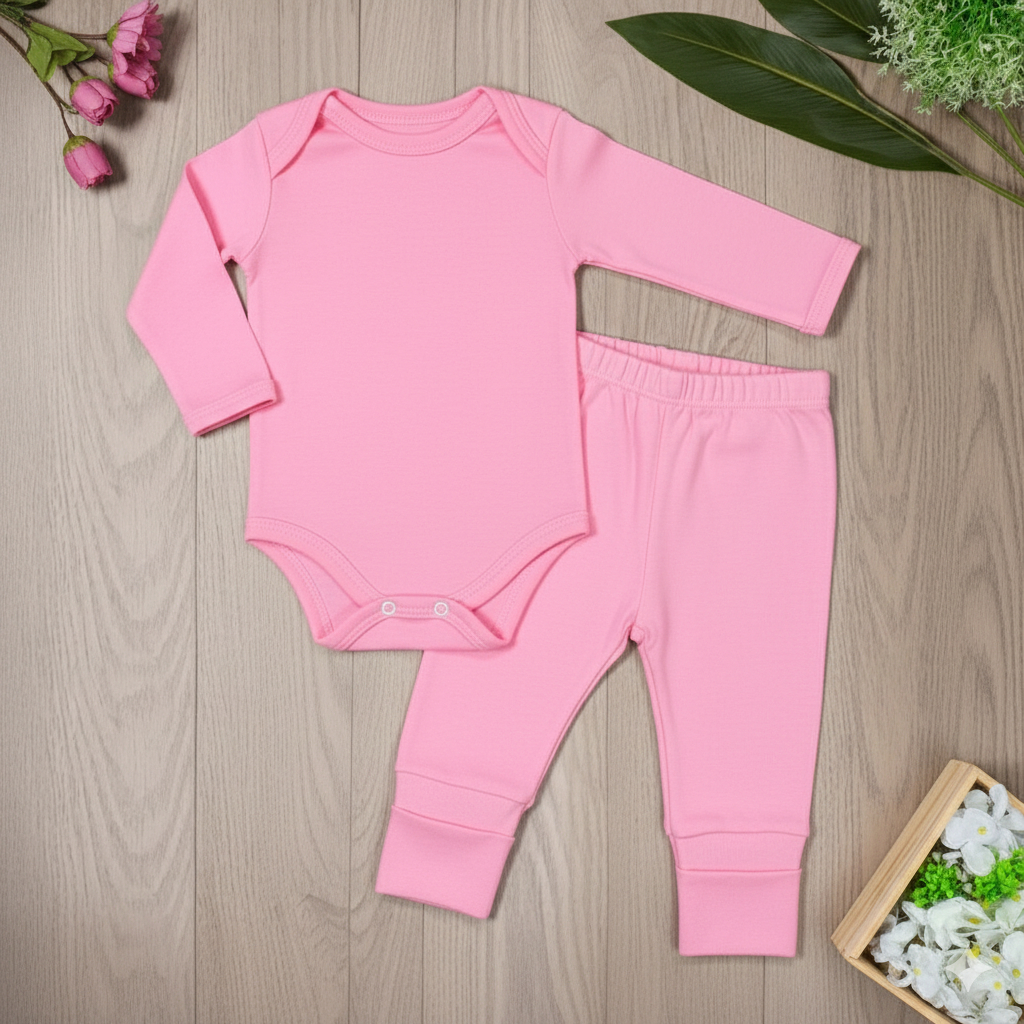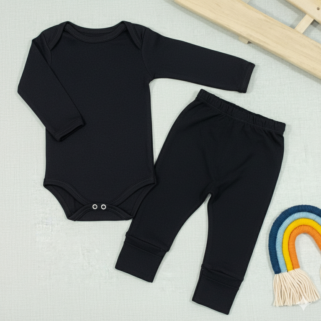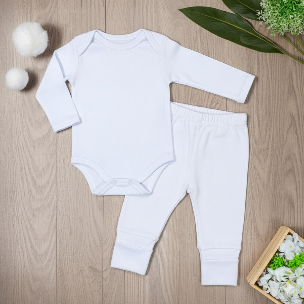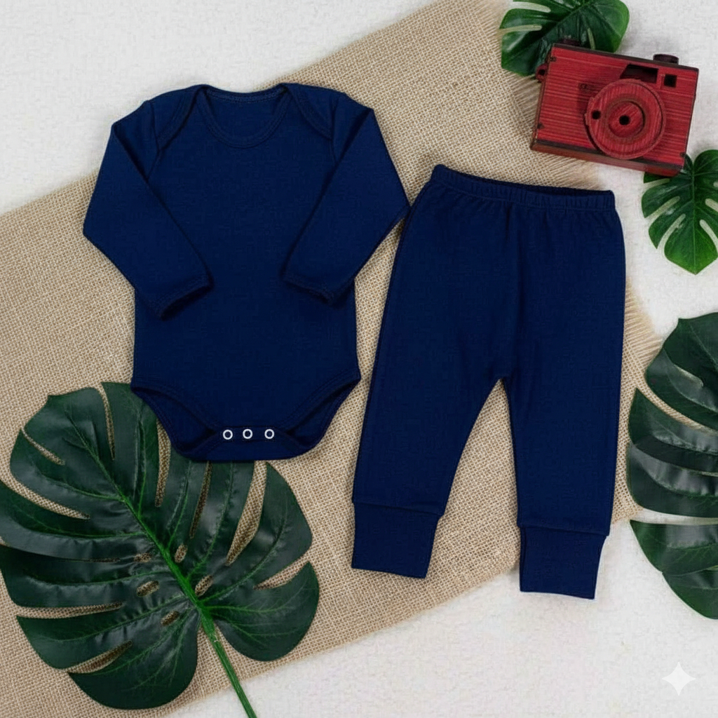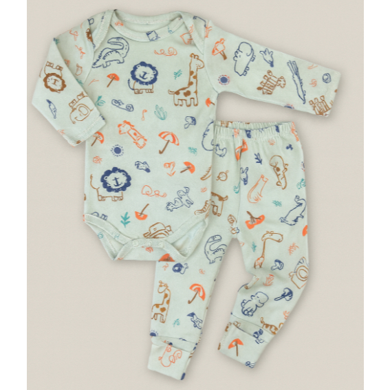 Conjunto Bebê 100% Algodão Suedine Body Manga Longa + Calça com Pé Reversível Até 12 Meses