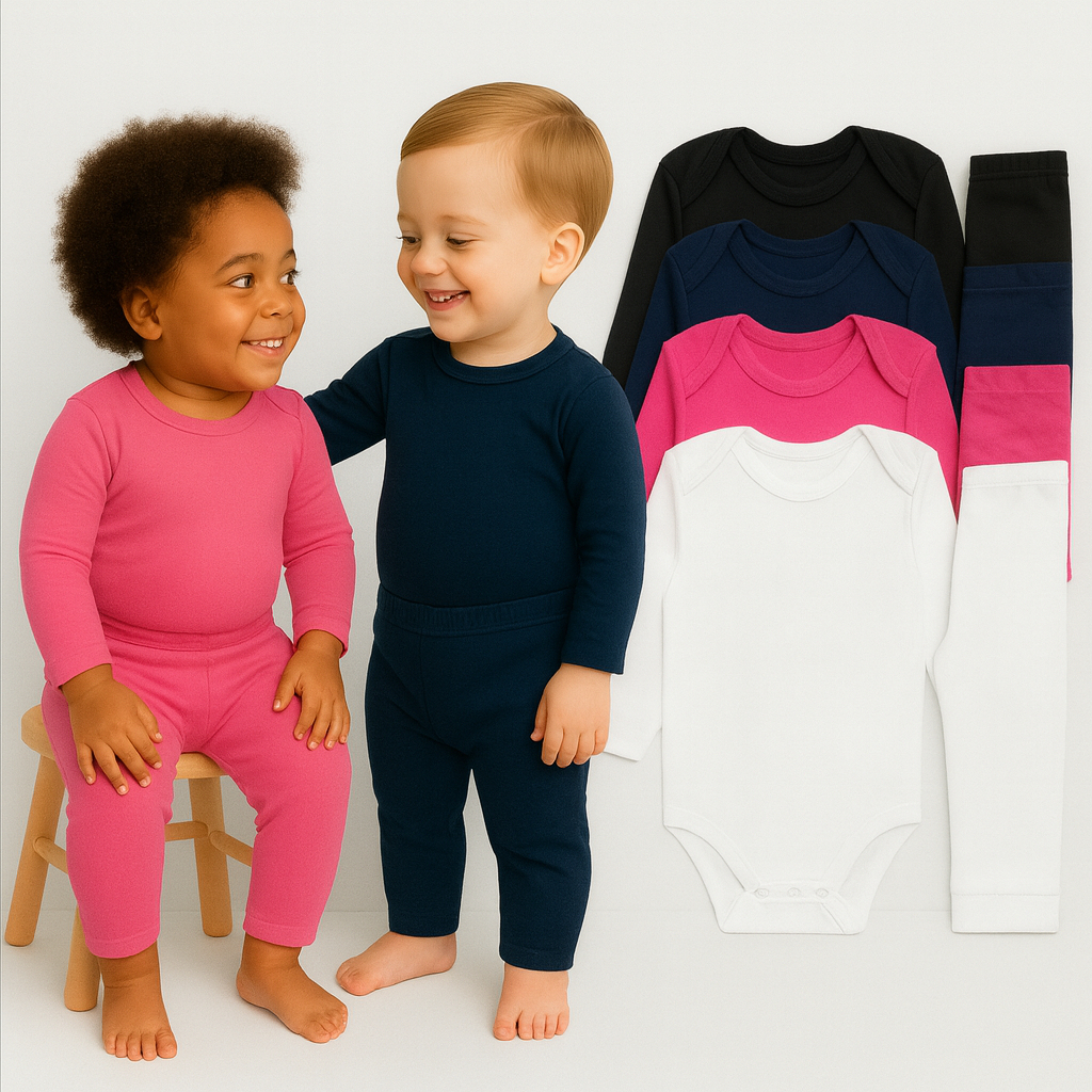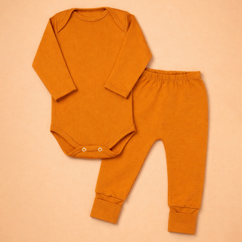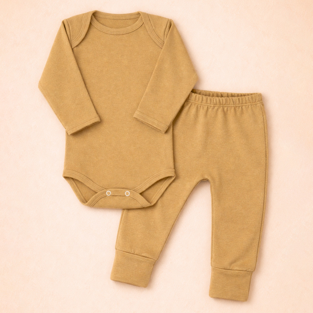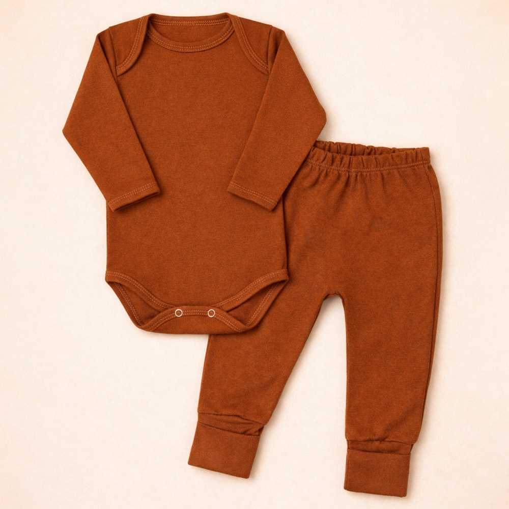 Conjunto Bebê 100% Algodão Suedine Body Manga Longa + Calça com Pé Reversível Até 12 Meses