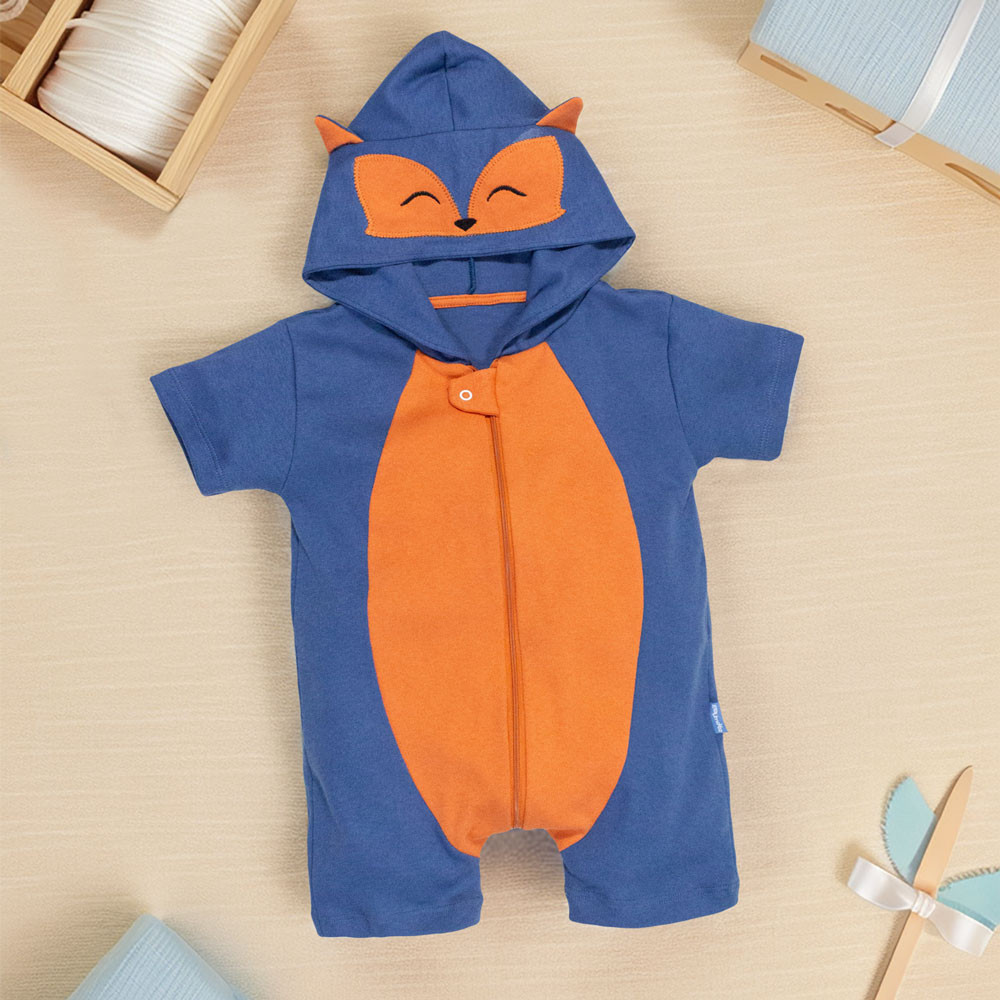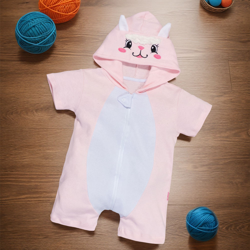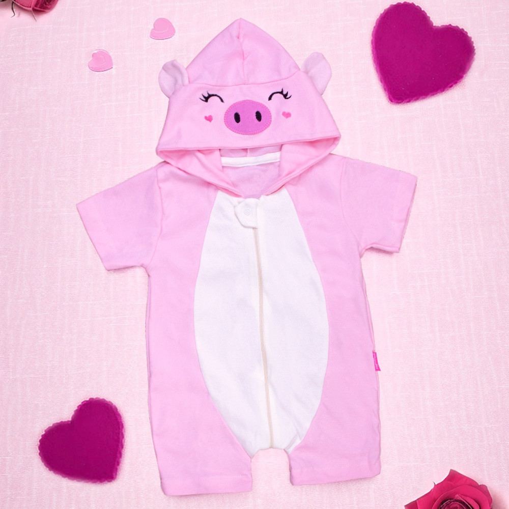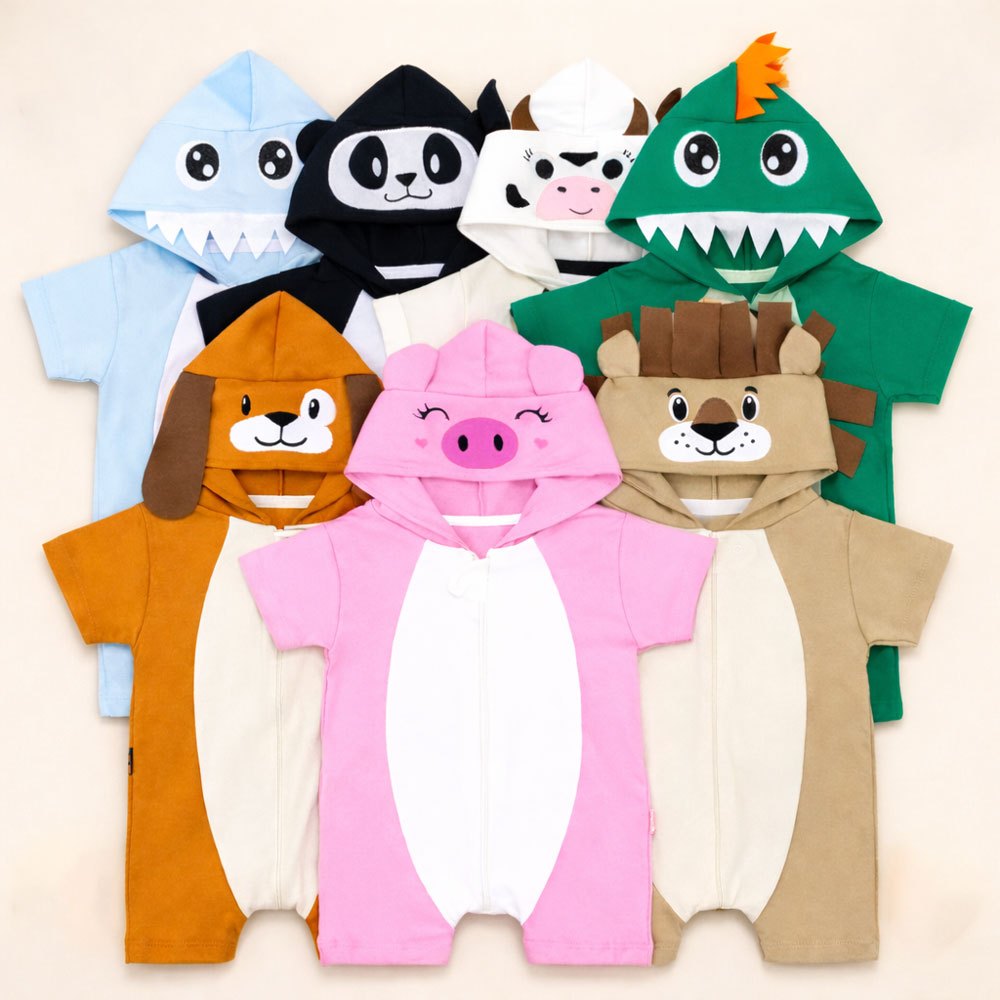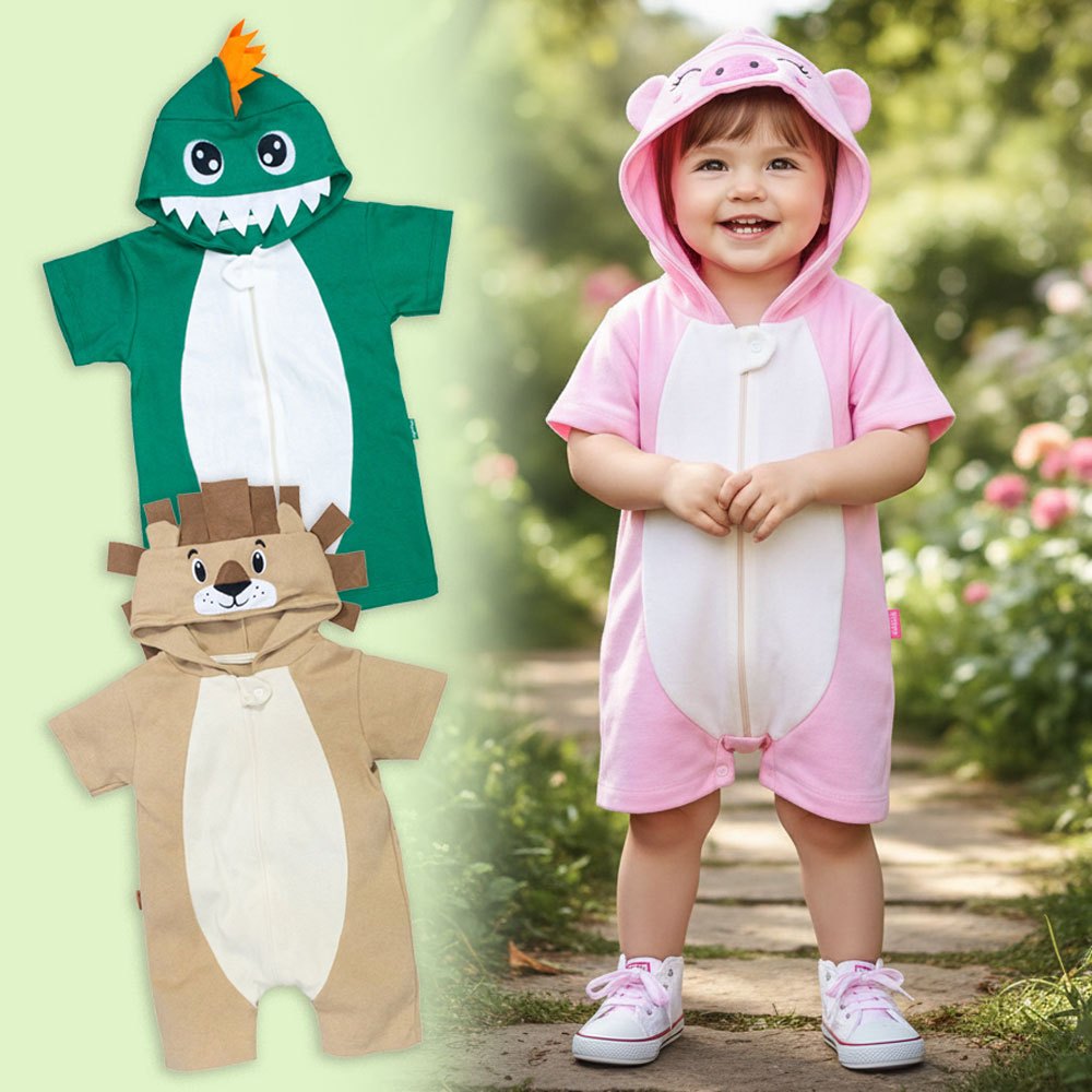 Macacão Bebê Bichinho com Capuz Bordado Divertido e Confortável Verão 0 a 24 Meses