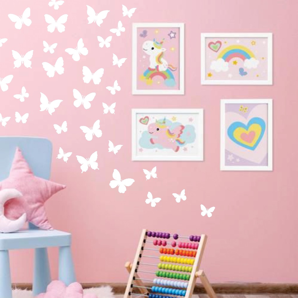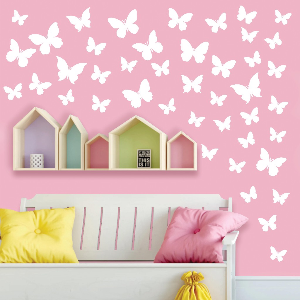 80 Adesivos De Parede Lindas Borboletas em branco para paredes coloridas, Decoração quarto infantil