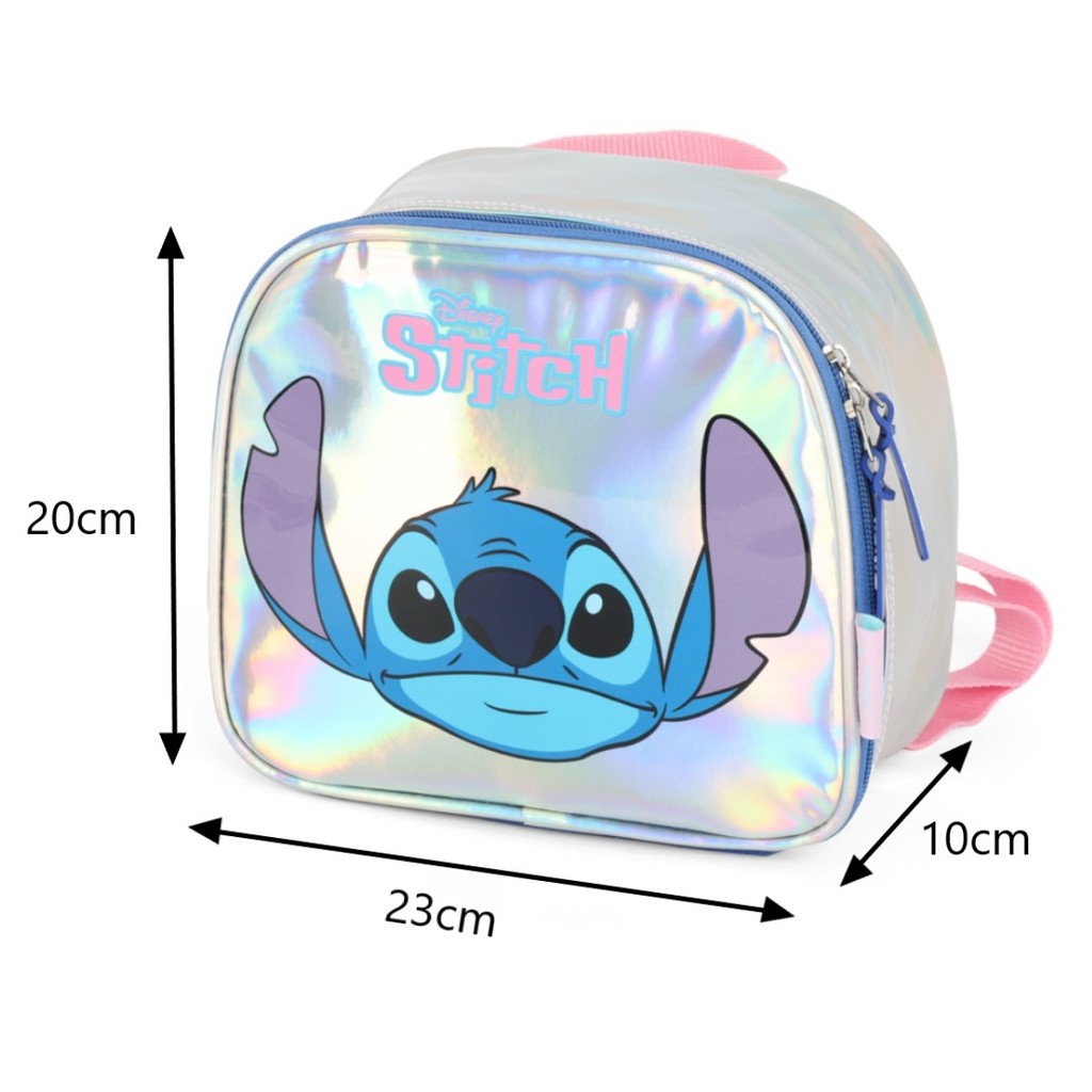 Mochila Lancheira Térmica Stitch Luxcel Holográfica 20cm