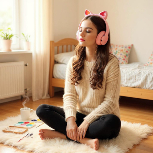 Eletronico Fone de Ouvido Sem Fio com Microfone e Design de Orelhas de Gatinho LED ALLVEZON