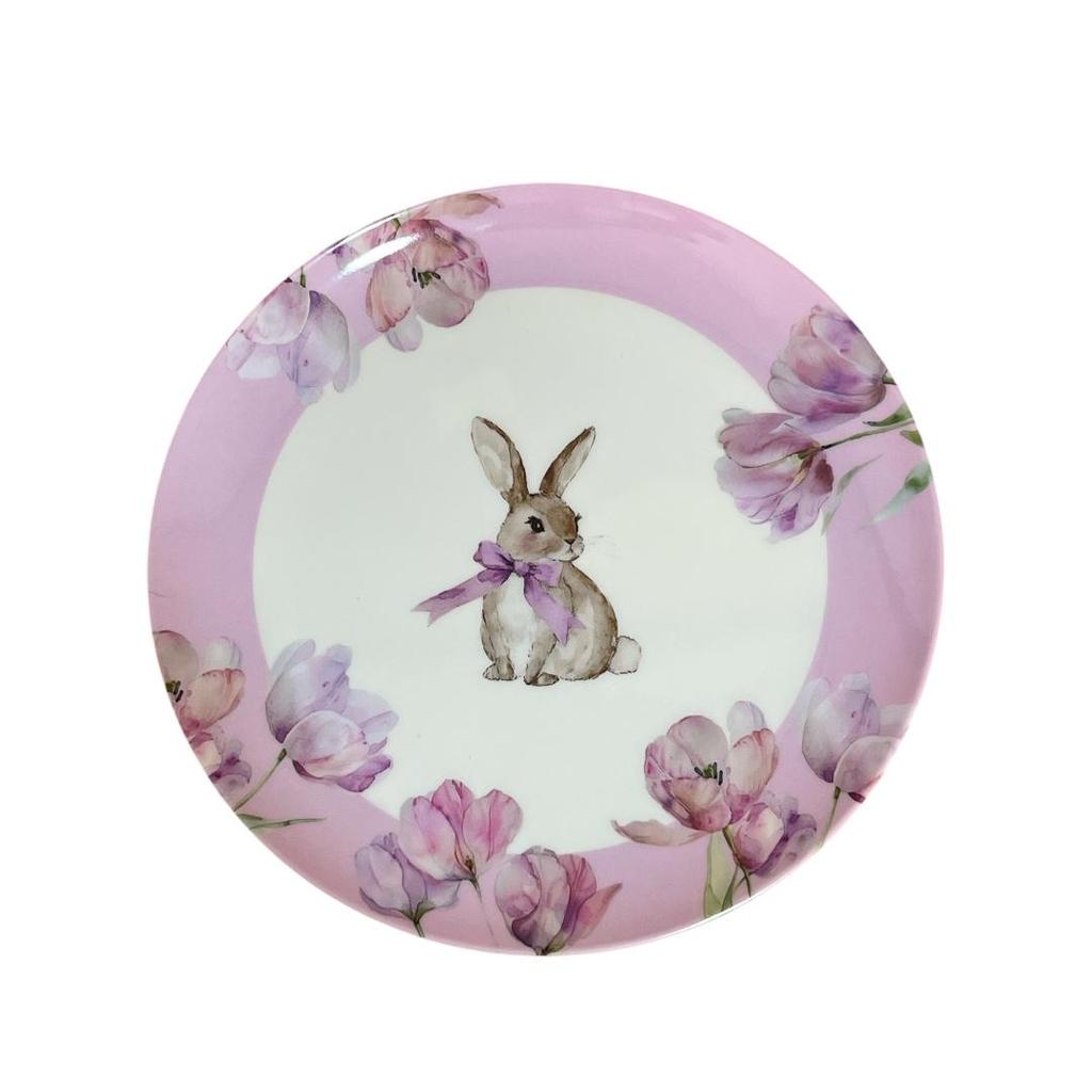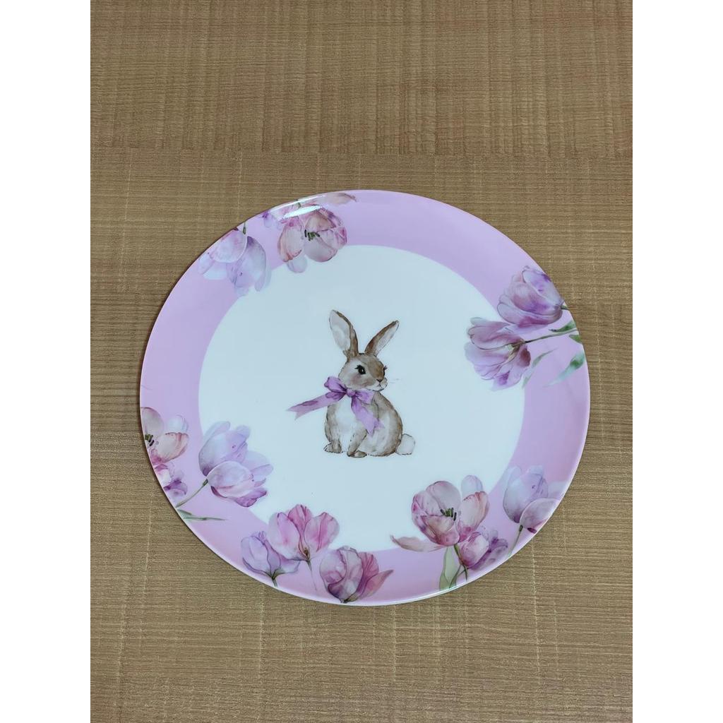 Prato Sobremesa Coelho Rosa em Melamina 20cm