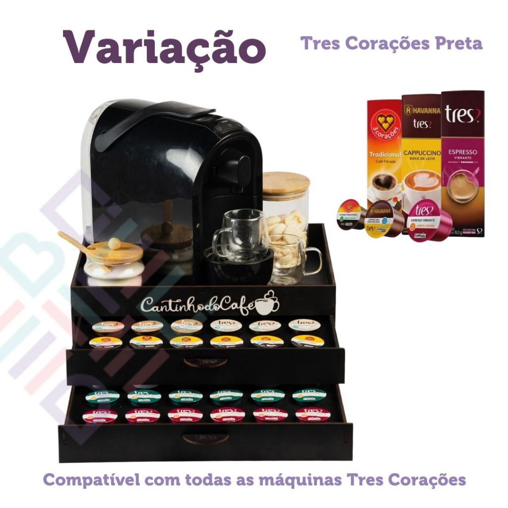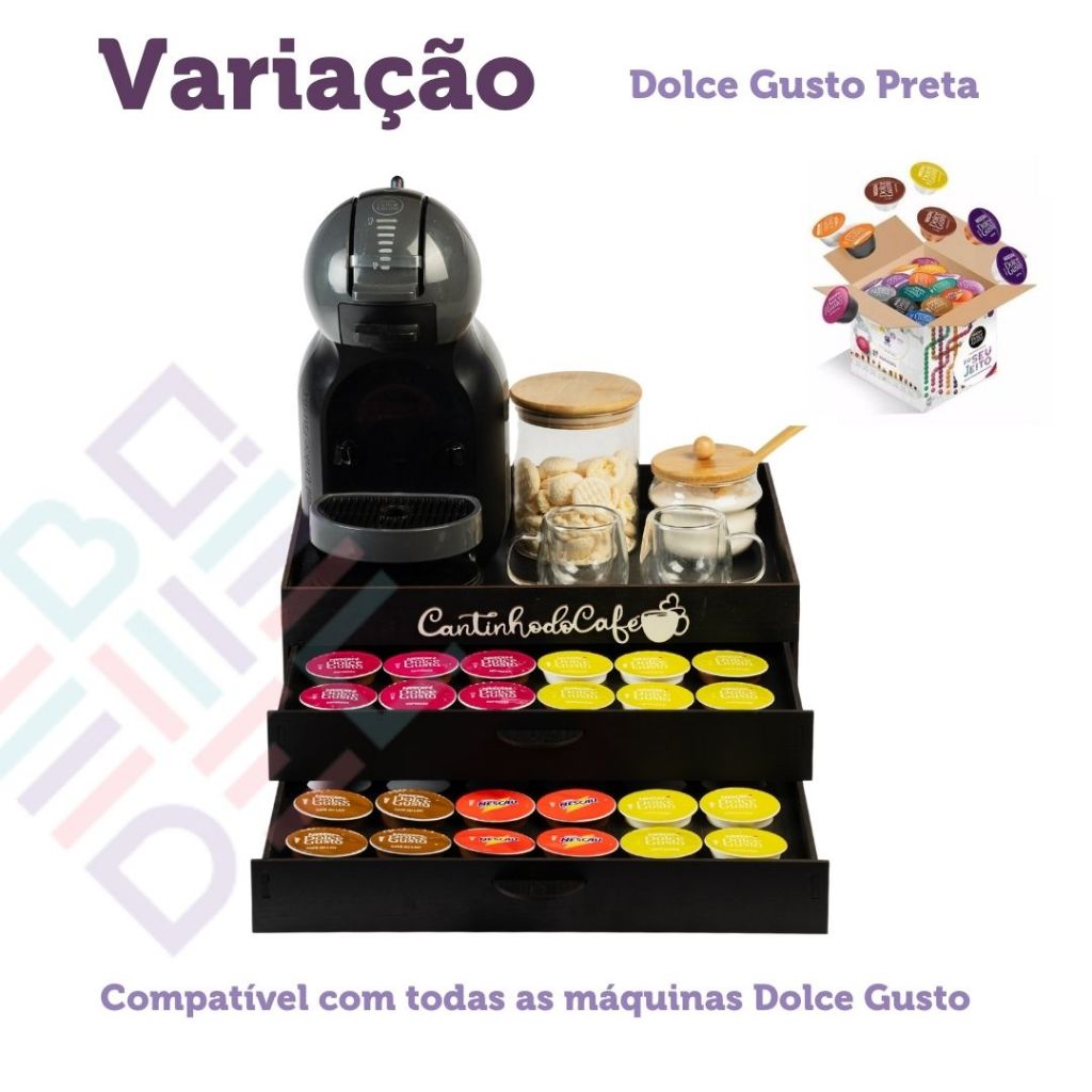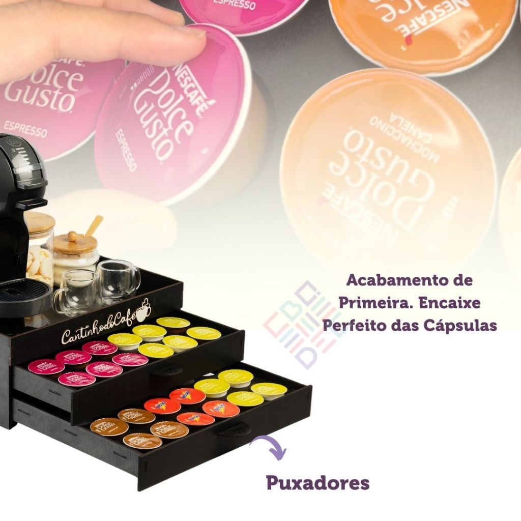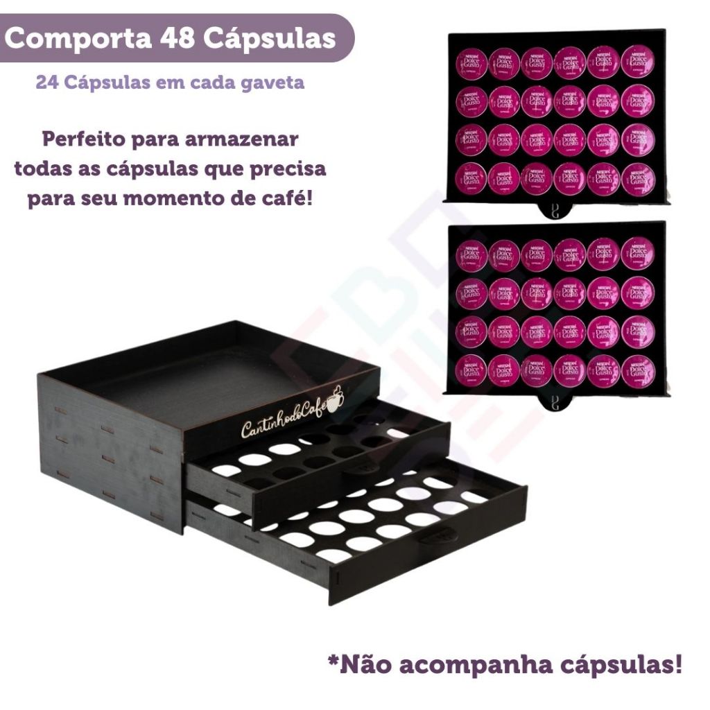 Bandeja Porta 48 Capsula Suporte 2 Gaveta Embutida Dolce Gusto 3 Corações Nespresso Cantinho do Cafe