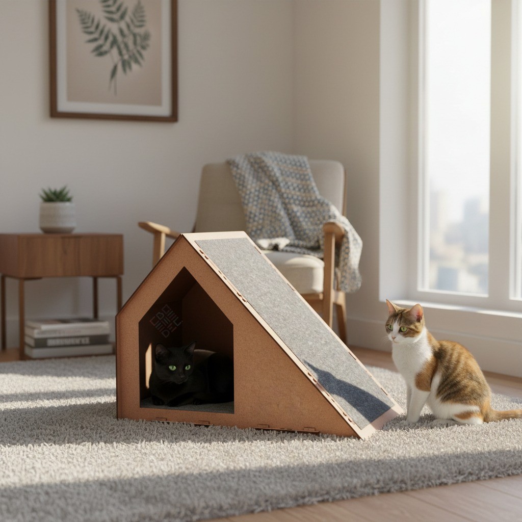 Casa Gato com Arranhador Rampa Playground Brinquedo Anti Estresse Divertido MDF Conforto E Luxo