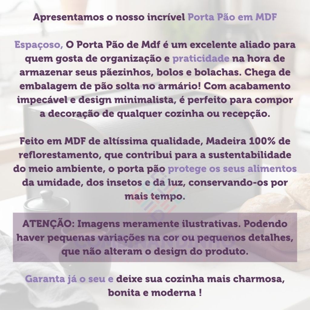 Porta Pão MDF Decorativo Para Armazenar Bolo Bolachas Café Manhã Cozinha Organização Caixa Premium