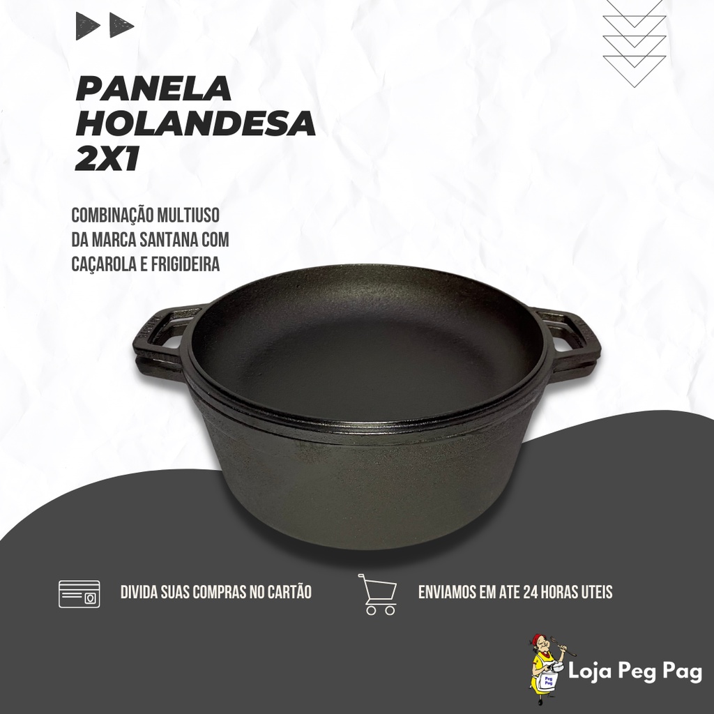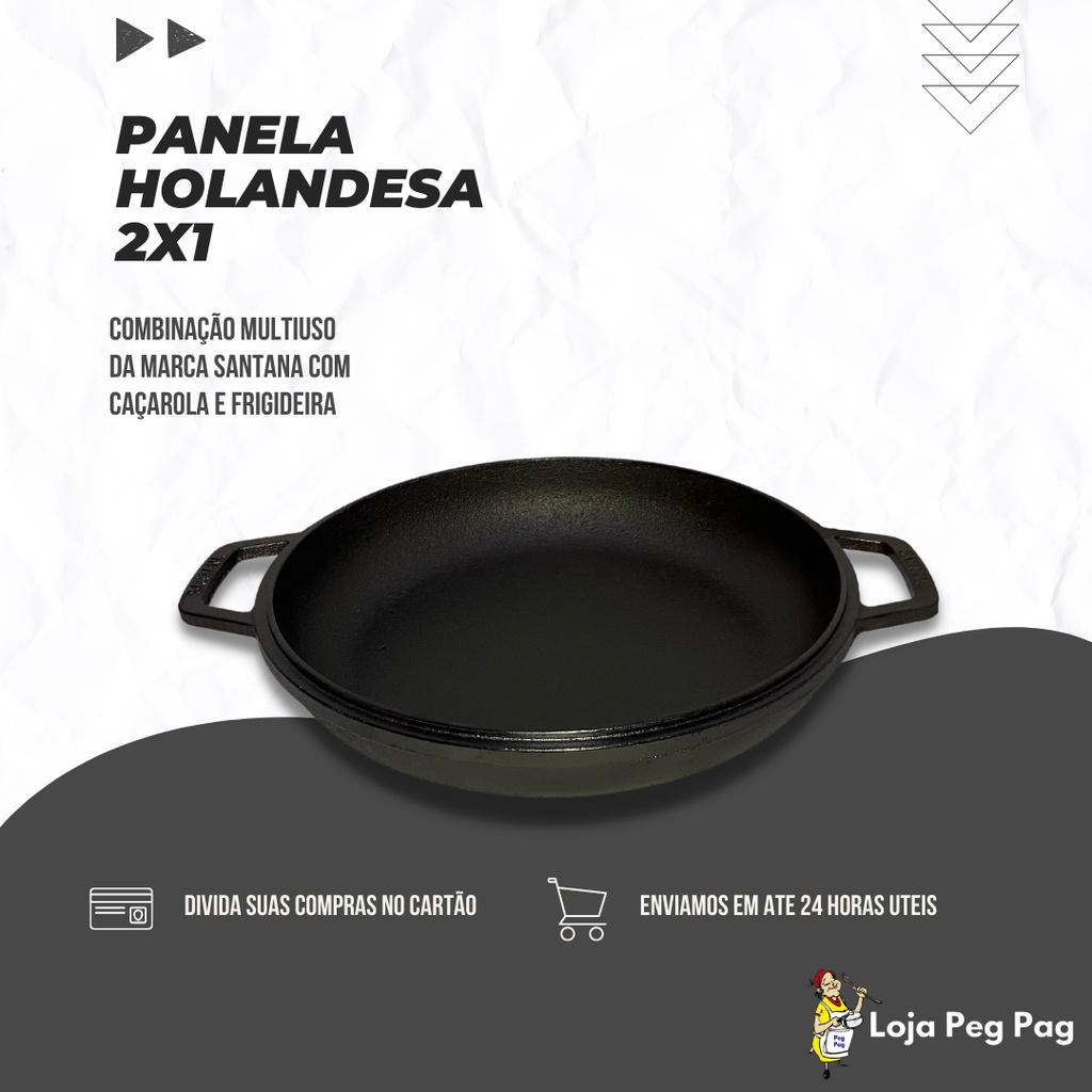 Panela Holandesa de Ferro Fundido 2 em1 (caçarola e frigideira) Assar Pães Caseiros