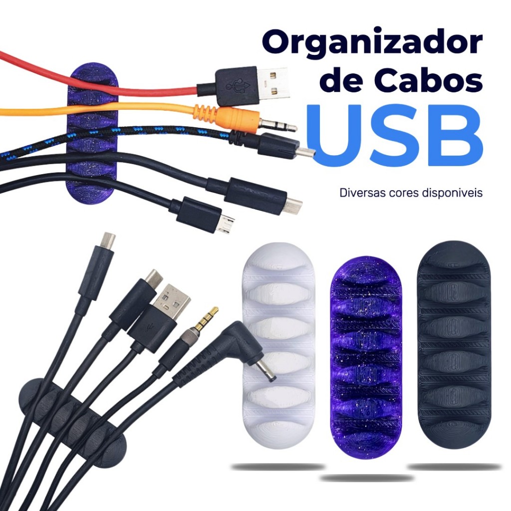 Organizador de Cabos e Fios para 5 cabos para mesa e parede