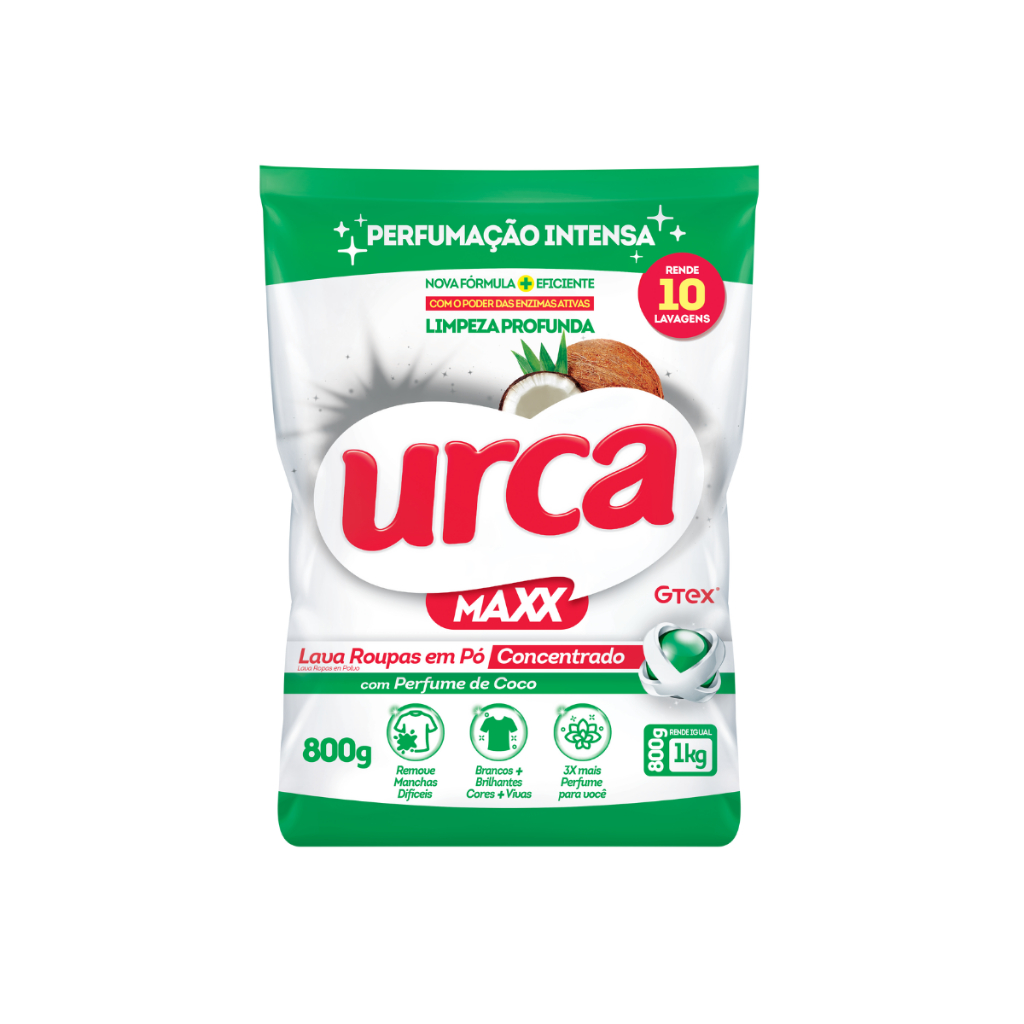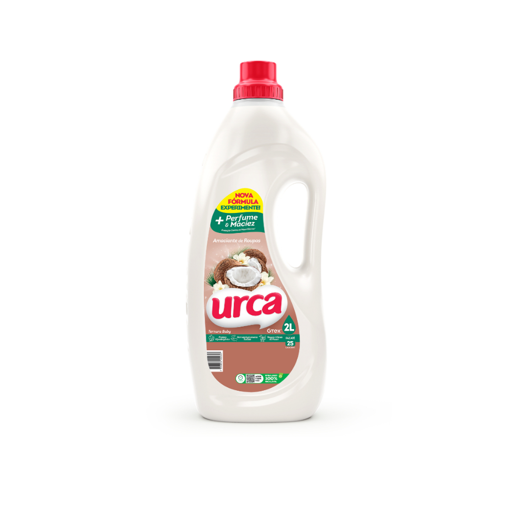 Kit 1 Amaciante Urca Ternura Baby - 2L + 1 Sabão em Pó Coco Urca Concentrado Sachê - 800g + 1 Lava Roupas Coco liq Urca