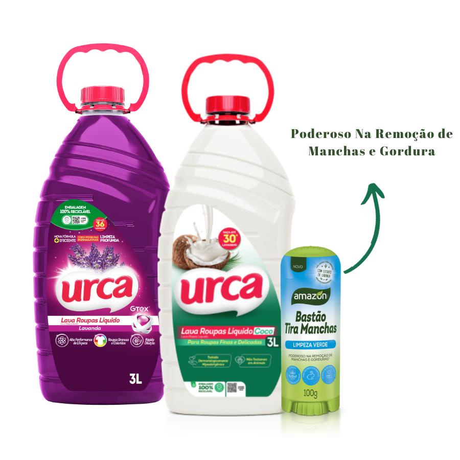 Kit 1 Lava Roupas Lavanda 3L + 1 Lava Roupas Coco 3L + 1 Bastão tira manchas 100G
