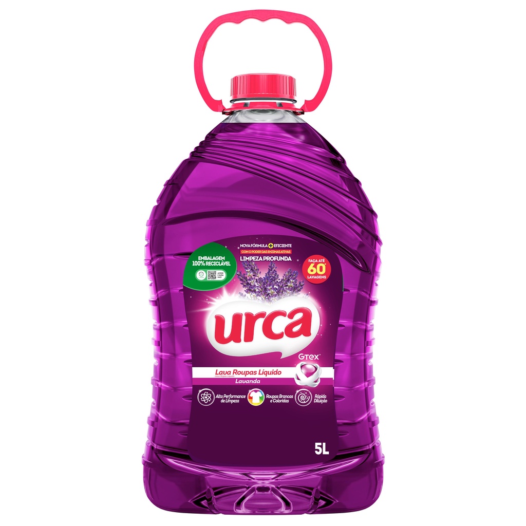 Kit 1 Lava Roupas Liquido Urca Lavanda - 5L + 1 Amaciante Urca Lavanda - 5L