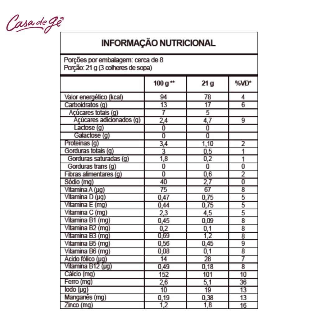 Mingau Multicereais Zero Lactose Vitalon - Sachê 180g