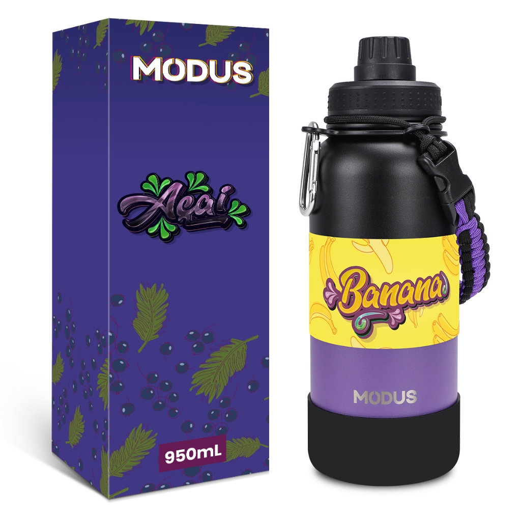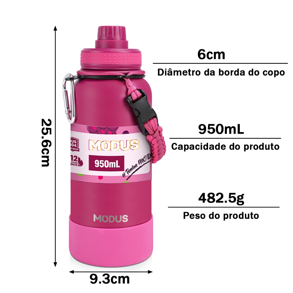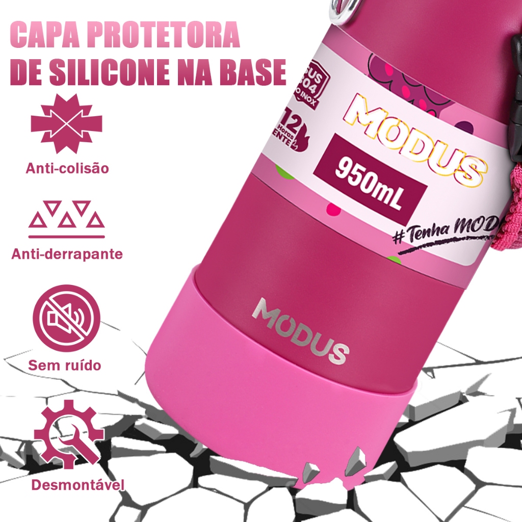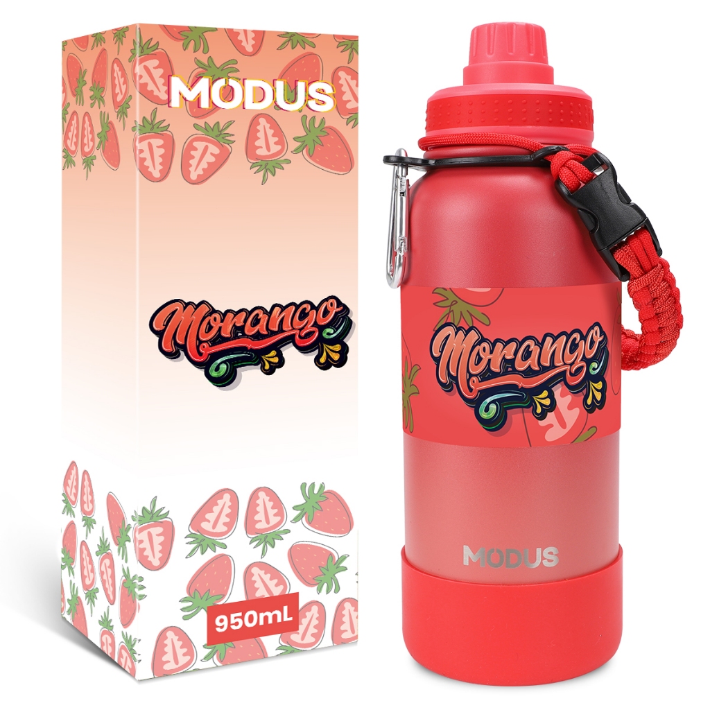 MODUS Garrafa Térmica 1 Litro Esportiva De Aço Inoxidável Com Isolamento A Vácuo com Base Emborrachada
