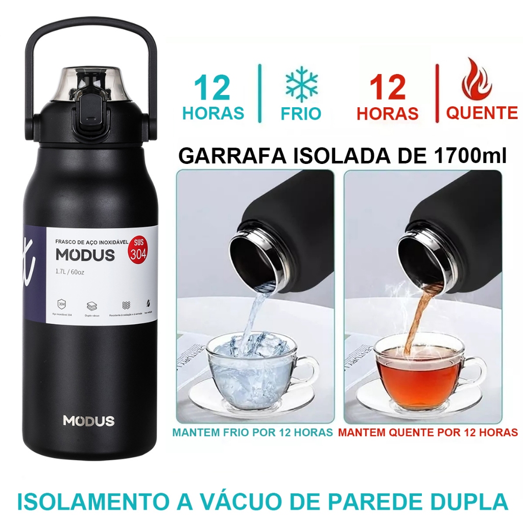 Garrafa Térmica Aço Inoxidável 1700ml Isolada a Vácuo Grande Capacidade Com Canudo