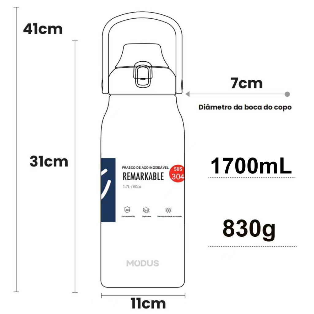 MODUS Garrafa de Água Isolada A Vácuo De Aço Inoxidável 1700ml Garrafa Térmica Com Canudo